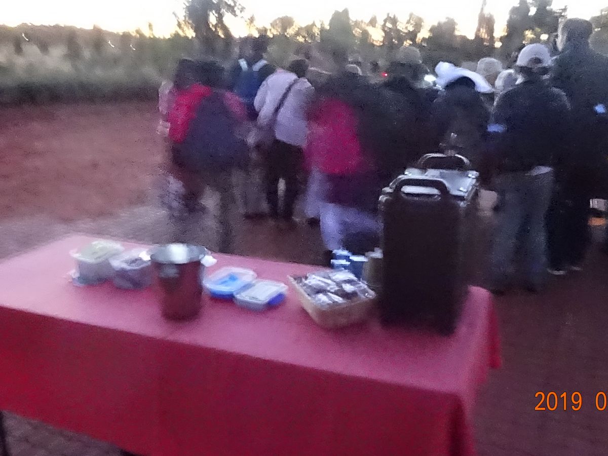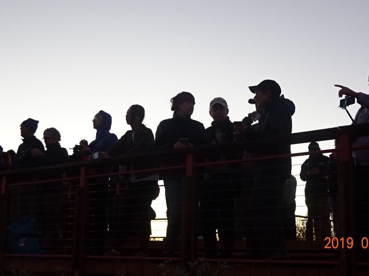 2日目のサンライズ会場はいろいろあるようですが、私の行った時のスポットは、ウルル、自分たちのいる場所、サンライズの方向というような場所でウルルの後ろからサンライズを期待していたので少し残念でしたがそれでも感動しました。