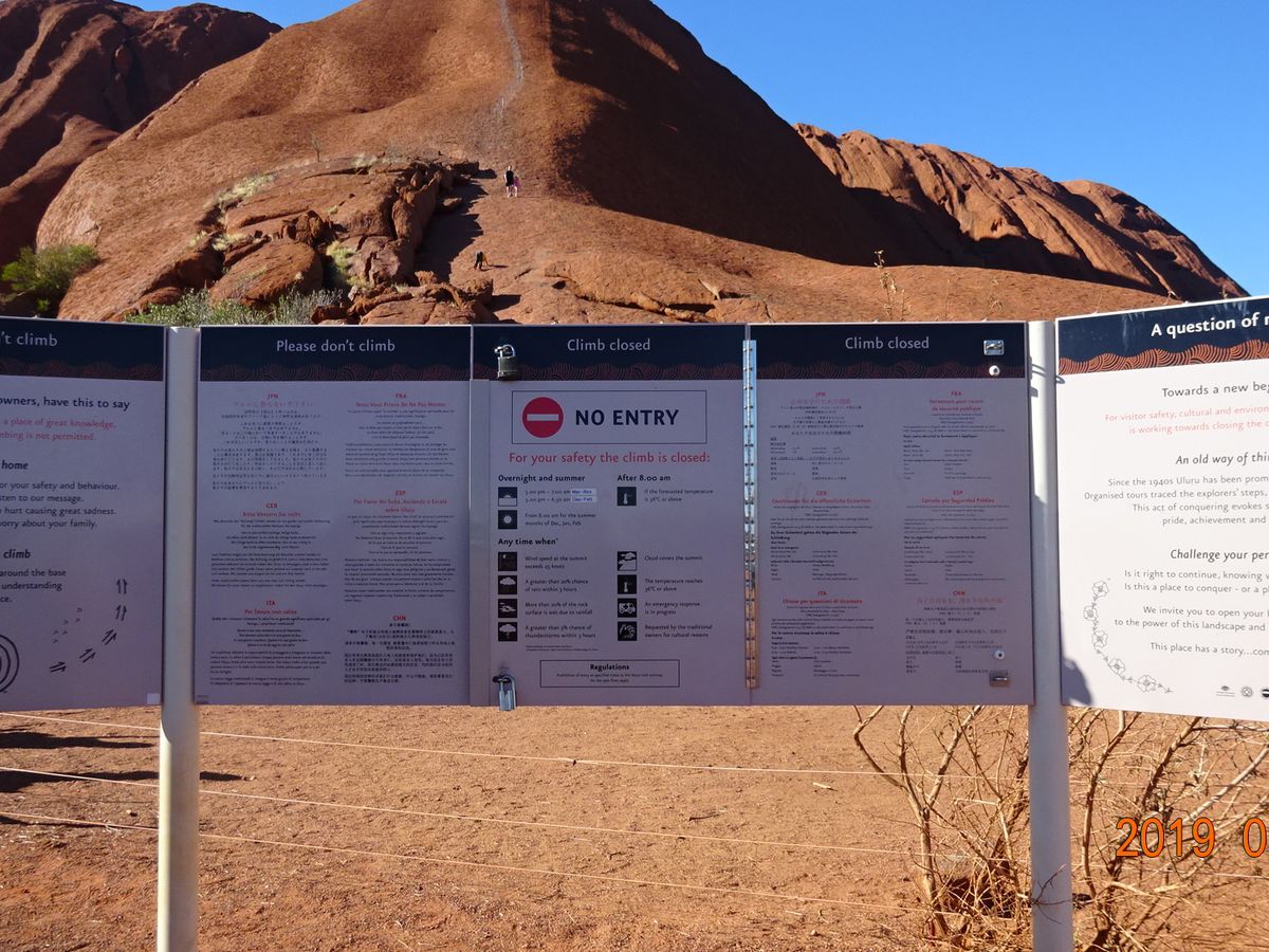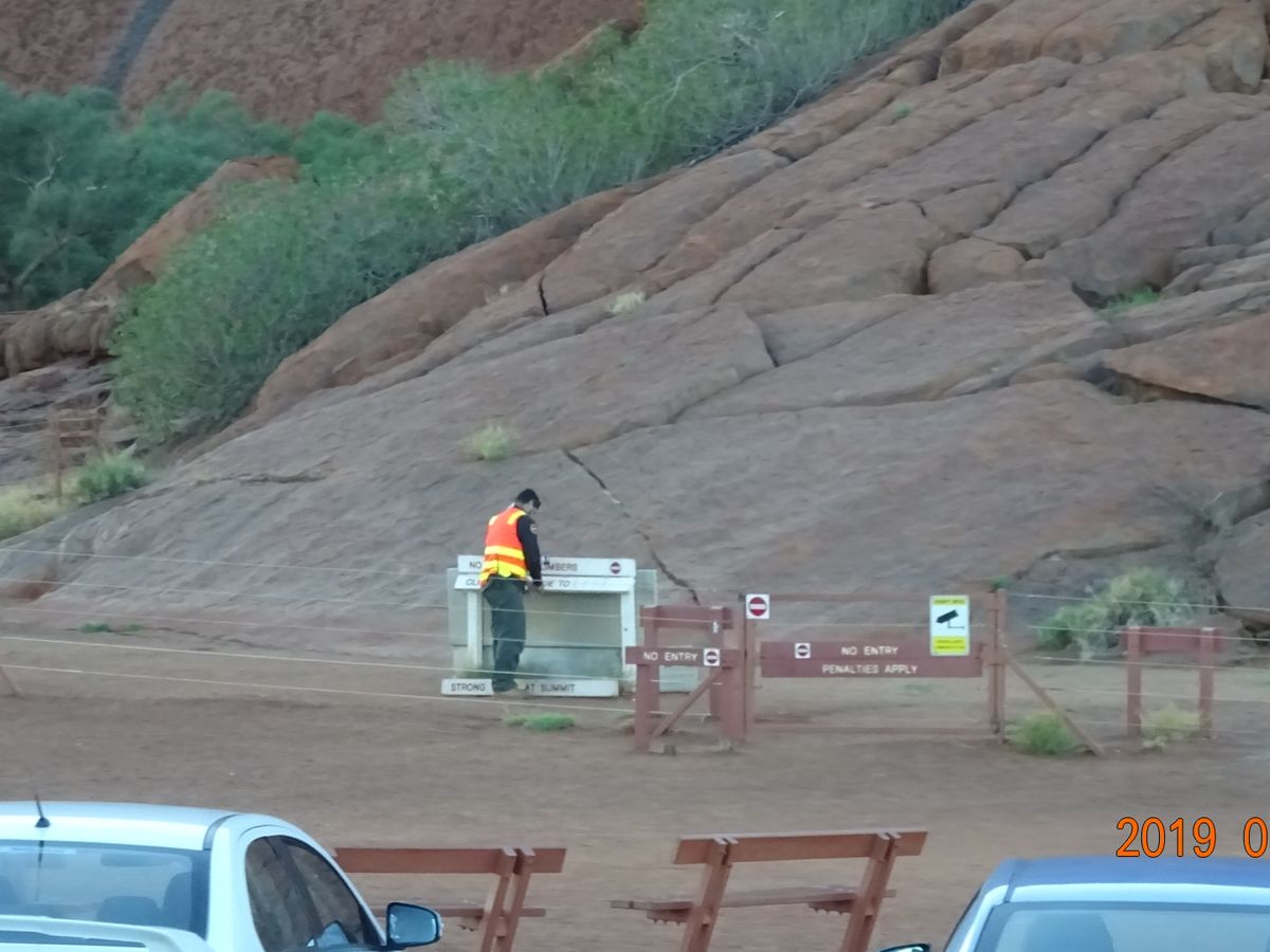 登山については、サンライズ会場からウルル麓に近づいた時と、麓ツアーの途中にゲートの前を通った時にゲートの開閉状況を確認しますので計3回のチャンスがあります。登山が許可されるか不許可はいろいろな理由があるようですが、不許可の一番多い理由は強風のようです。