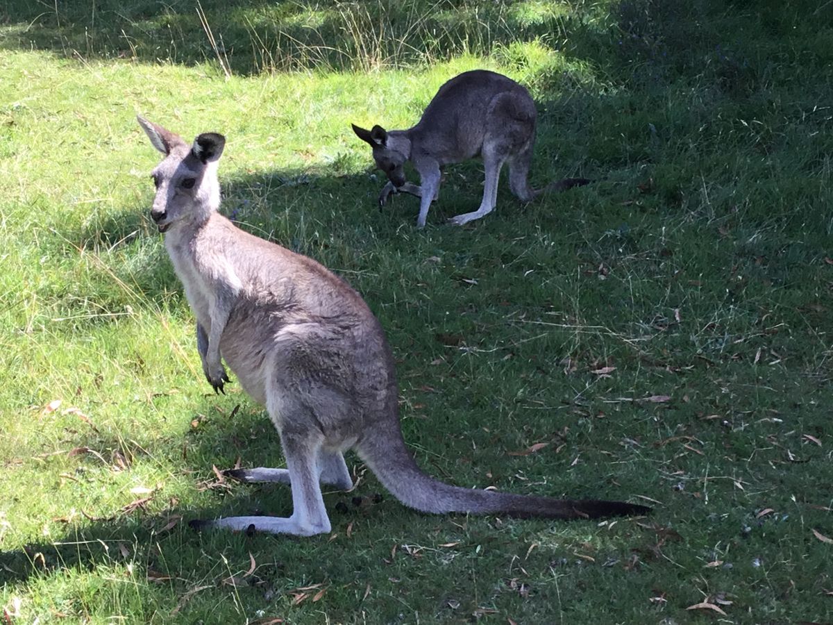 野生のカンガルーもすぐ見れてラッキーでした。野生とはいえ、すぐ触れそうです。