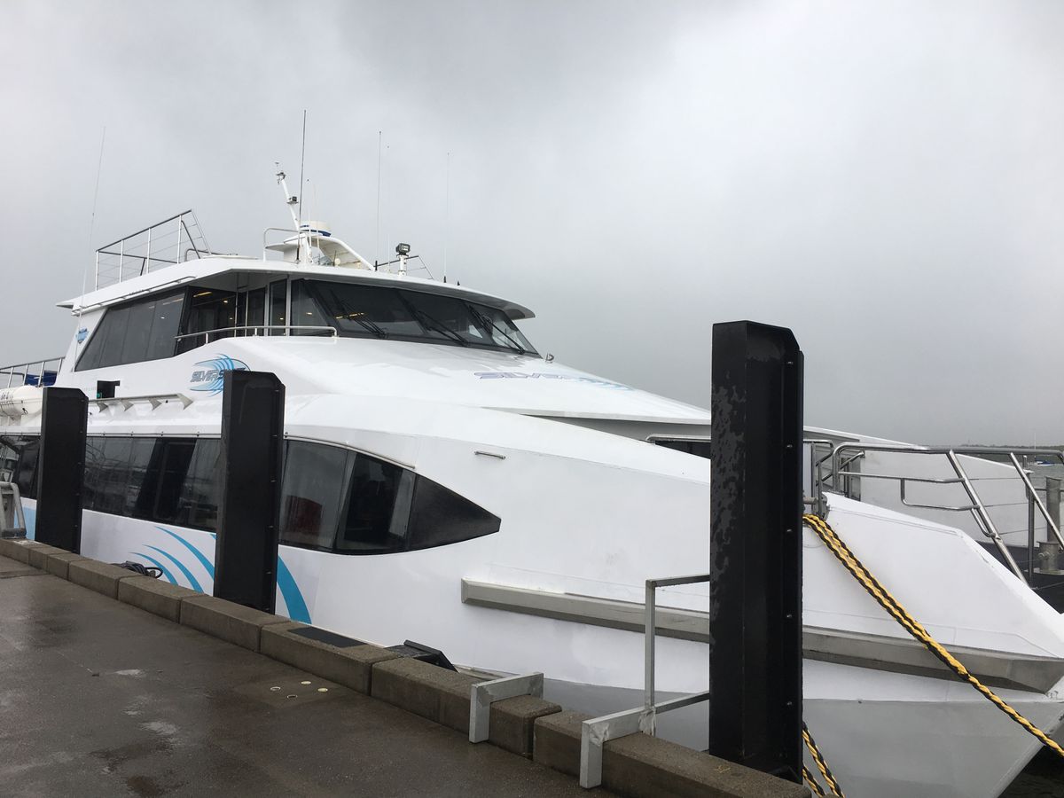 ターミナルでチェックインし、案内されたSILVERSWIFT号に乗り込むと、早速朝食(マフィンとフルーツ)とコーヒー、ティーが用意されていました。