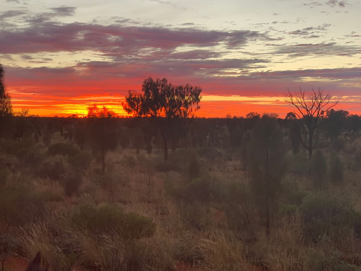 2日目:前日夜からストーム。嫌な予感がしつつ、サンライズ。夜の雨のおかげで二重の虹がウルルにかかっているのを見ることができました!その後雨か降ってきてしまったためウルル登頂はかないませんでしたが麓巡りで色々なお話を聞かせていただけましたので満足できました。
