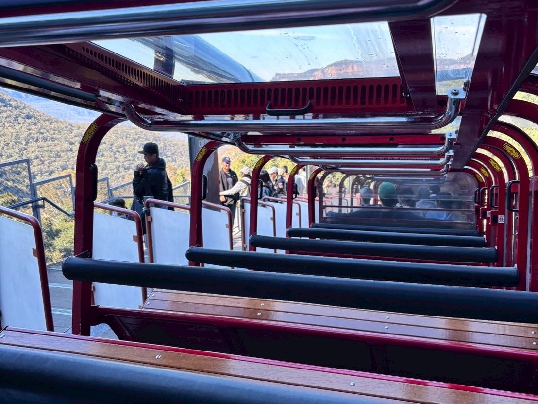 シーニックワールドの赤トロッコが急勾配すぎて驚きます。ぜひ乗ってください。
