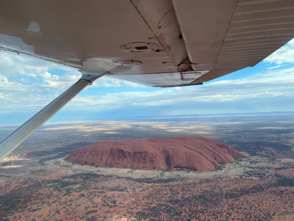 セスナは初めてで少々不安でしたが、結果的に最高の思い出になりました。上空から眺めるウルルは絶景でした。