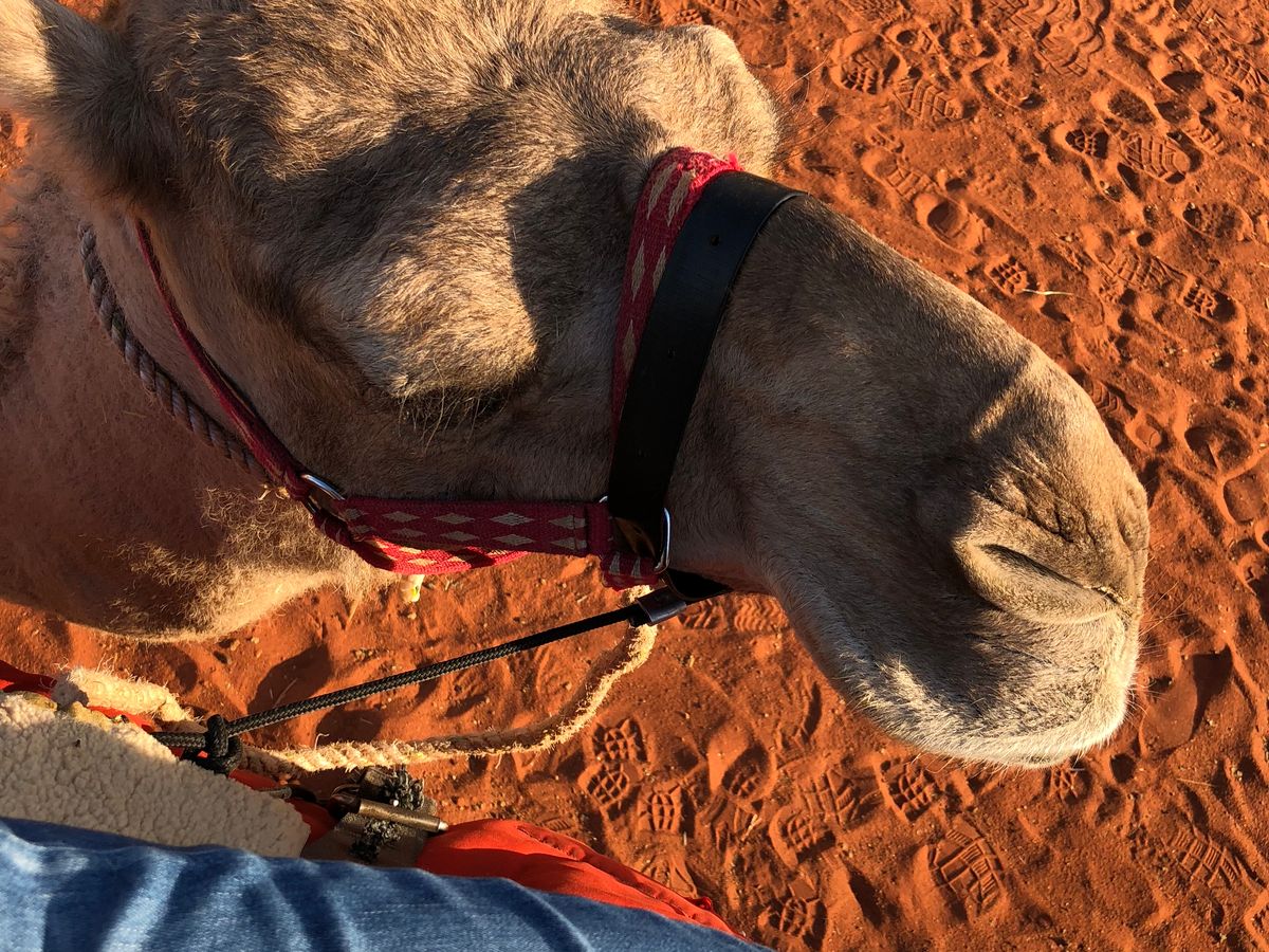 夕日のツアーでしたがあいにくの曇り空でした。それでも1時間以上ラクダに乗って歩きとても楽しかったです!