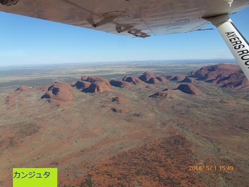 ウルルは登頂もし、朝日も夕日も鑑賞し充分満足でしたが、空からの景色は素晴らしい!圧巻です。カタジュタは下から見ることができるのはほんの一部分。空からだとこんなになっているのね~と感動しました。