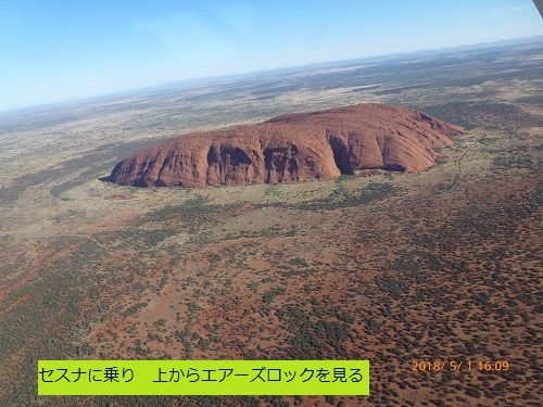 飛行機からも少しウルルは見えますがセスナはより近くを飛んでじっくりと見せてくれますので迫力があります。案内は英語ですが、わからなくても景色さえあれば十分でした。