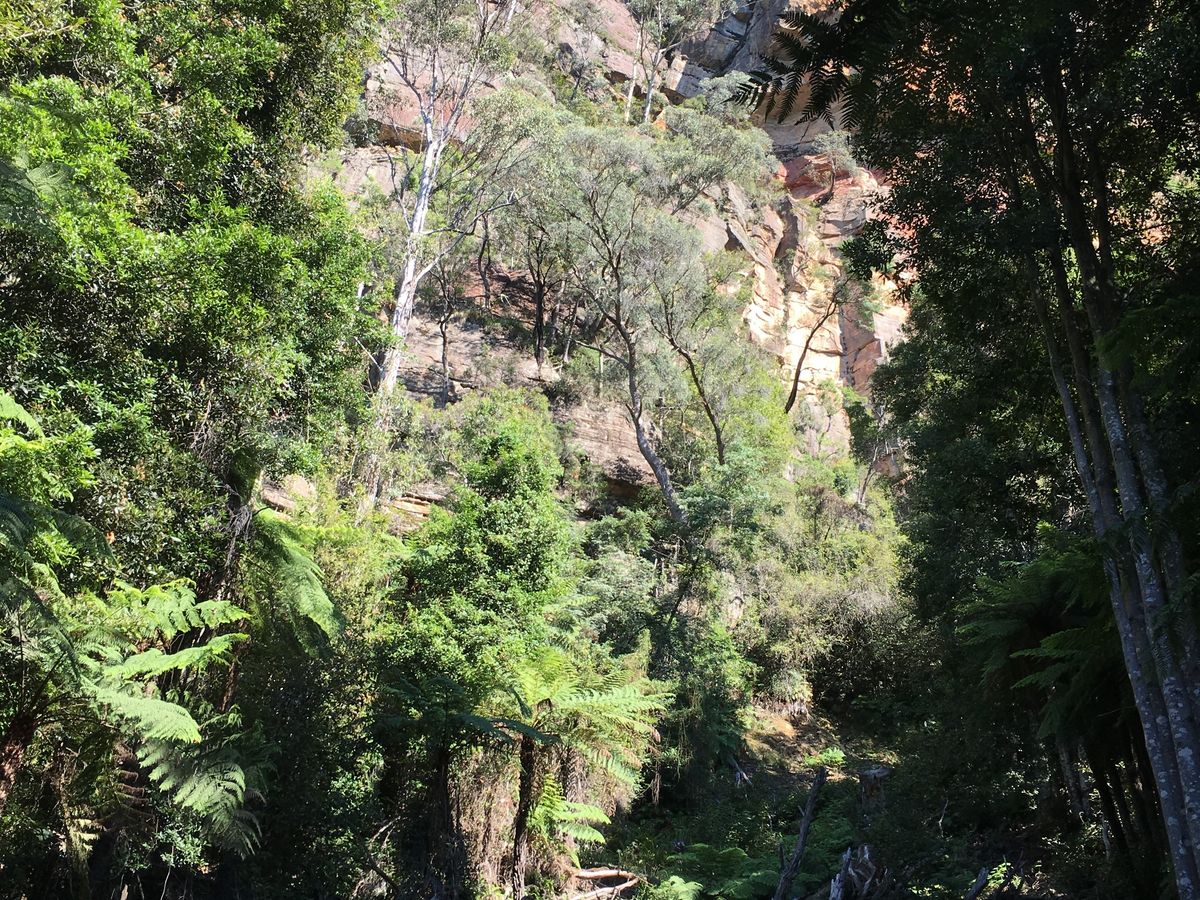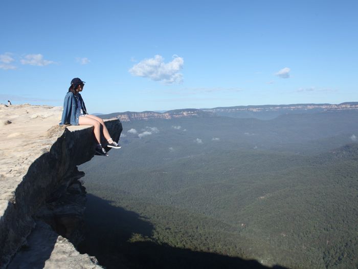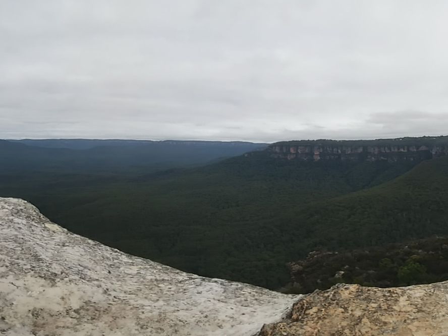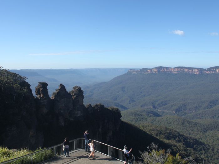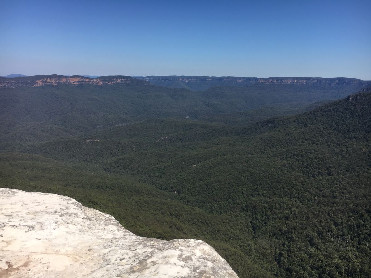 スリリングな断崖絶壁展望地の『キングステーブル』では好天にも恵まれ、うっすらとブルー。ユーカリ樹海と『スリーシスターズ』も、雲が去り美しかった。