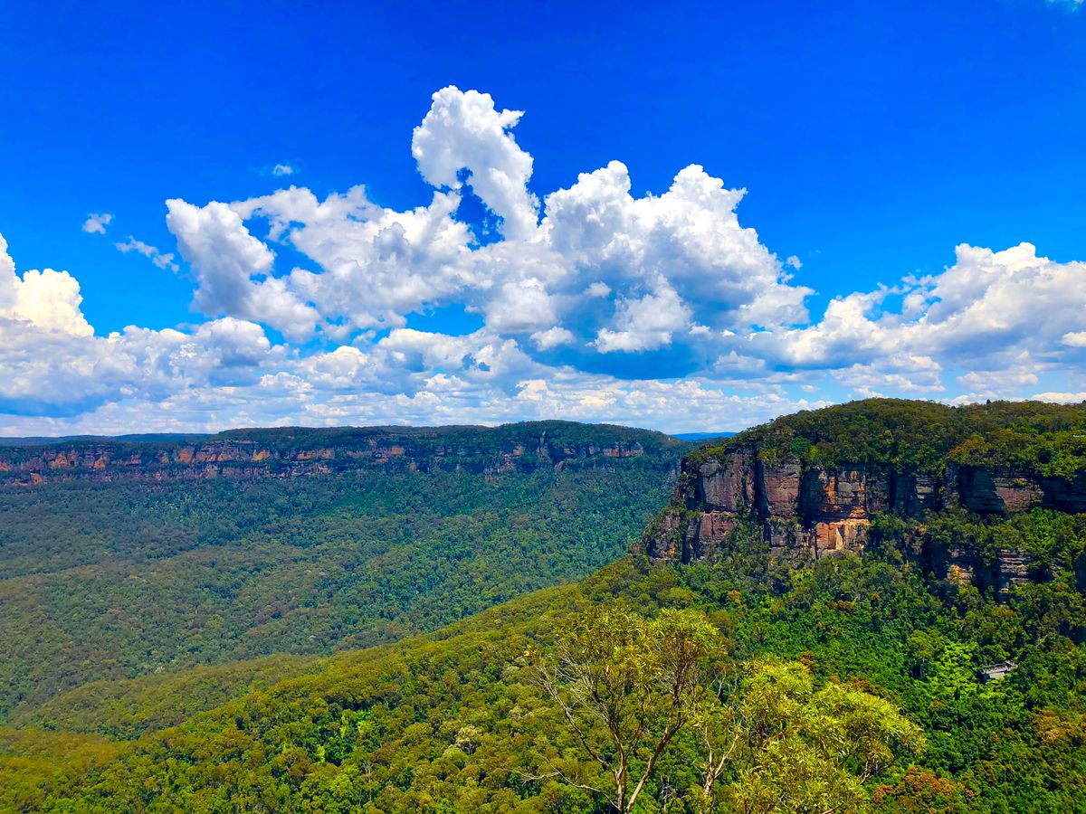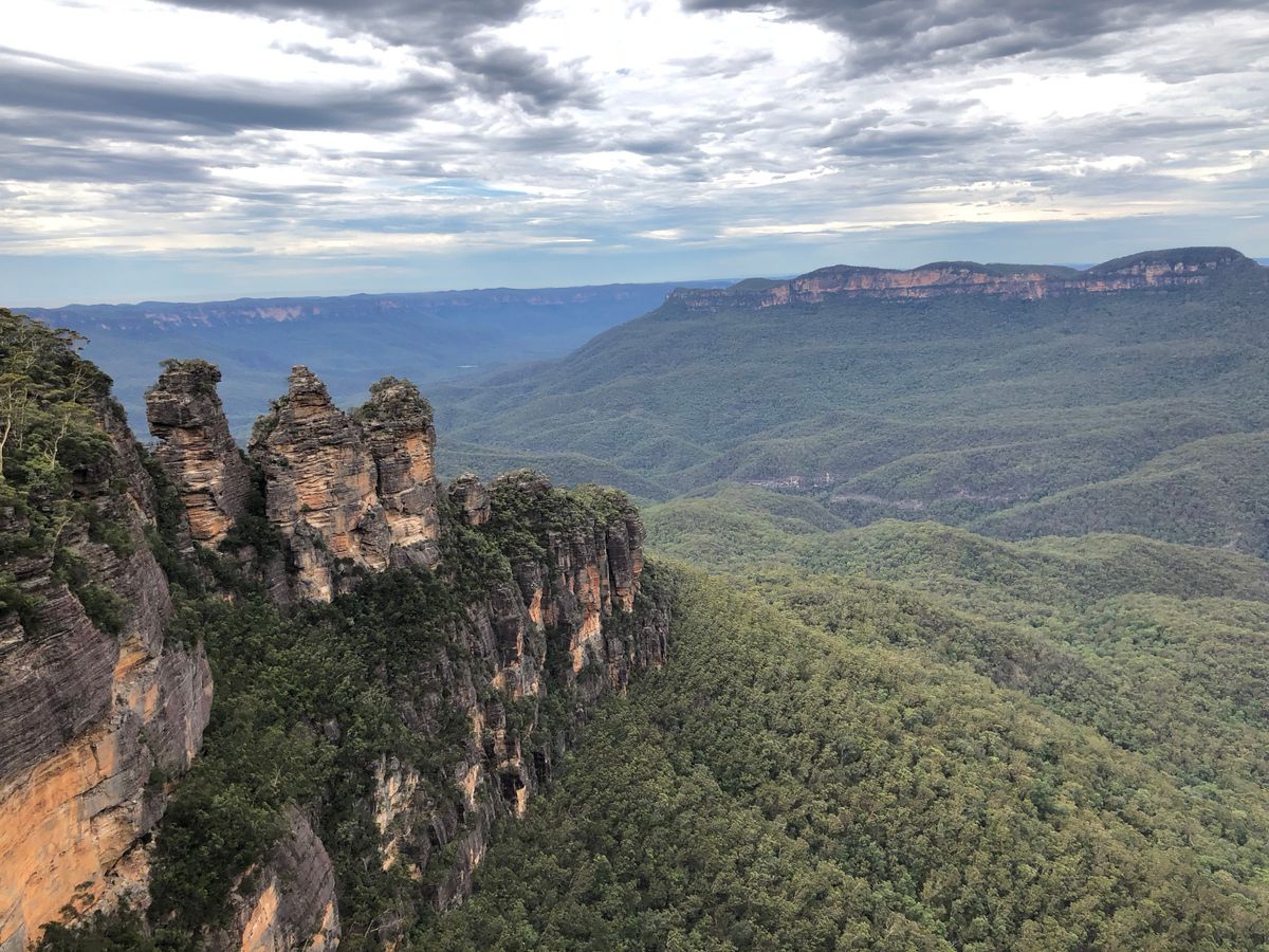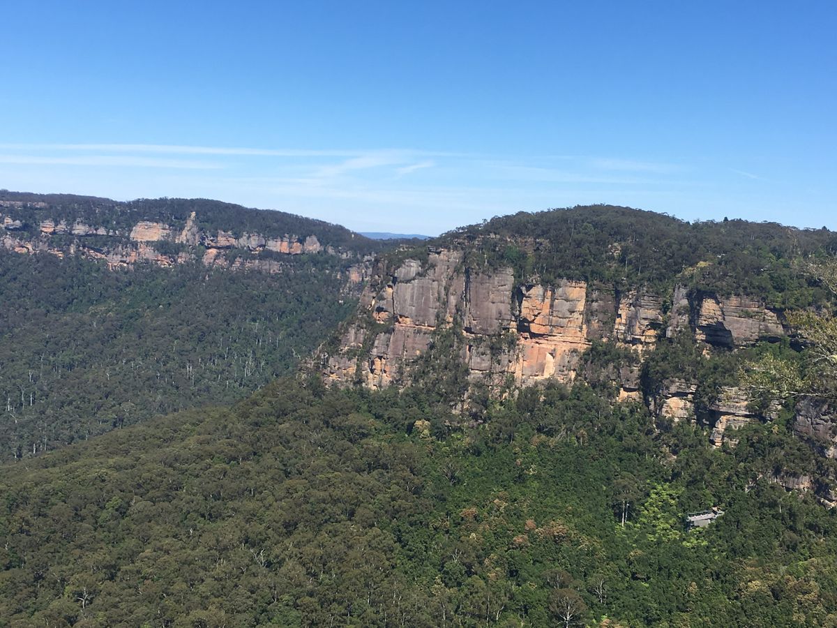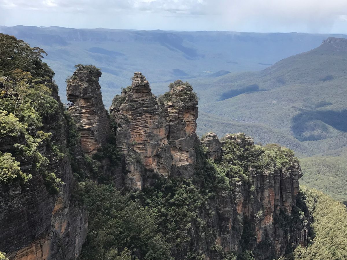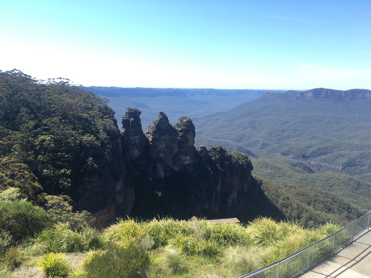 今回のシドニー観光の一番の目玉が、ブルーマウンテンツアーでした。最初の目的地が近づくにつれて、霧が発生して来ました。ツアーガイドのジャックさんの機転により、後から行く予定だった街の観光を先に済ませましたが、それでも霧は晴れず、トロッコとゴンドラに乗る時刻になっても、視界は真っ白。私は仕方なくゴンドラを諦め、散策することにしました。するとわずか1分程度だと思いますが一瞬霧が晴れ、山から谷へ流れ落ちる滝が目の前に現れました。次の目的地スリーシスターズに着く頃には霧も完全に晴れ、空には太陽が。遠くの壮大な山々が鮮明に見え、感動しました。最後は、日本人はなかなか行く機会のないと言う絶景ポイント。一歩踏み間違えると崖に転落しそうな場所でした。午前中から一転して、途中からは壮大な自然の景色を満喫出来る素晴らしいツアーとなりました。