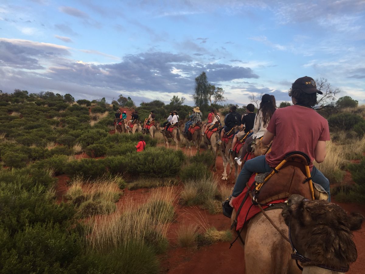 朝四時に起床し、真っ暗な中をバスでスタート。日の出まではツアーで用意してくださる温かい飲み物やクッキー、前日に自分で買っておいたマフィンなどを朝食にUluruの色の変化を楽しみます。朝から雲が多く、風も少し吹いていたので、おそらく登山は無理だなあと思いつつ、登山口に向かったところ、予想通り、storm予報により登山禁止の札が出ていました。バスの中でガイドさんが、Uluruのこと、アナング族のことを沢山話してくださることにより、日本にいる時は是非登りたいと思っていた息子も、登山できないとわかっても納得した様子。麓の散策で十分楽しめました。馴れ馴れしすぎず、でもいつも笑顔でガイドして下さったので、登山ができなくても十分満足できました。