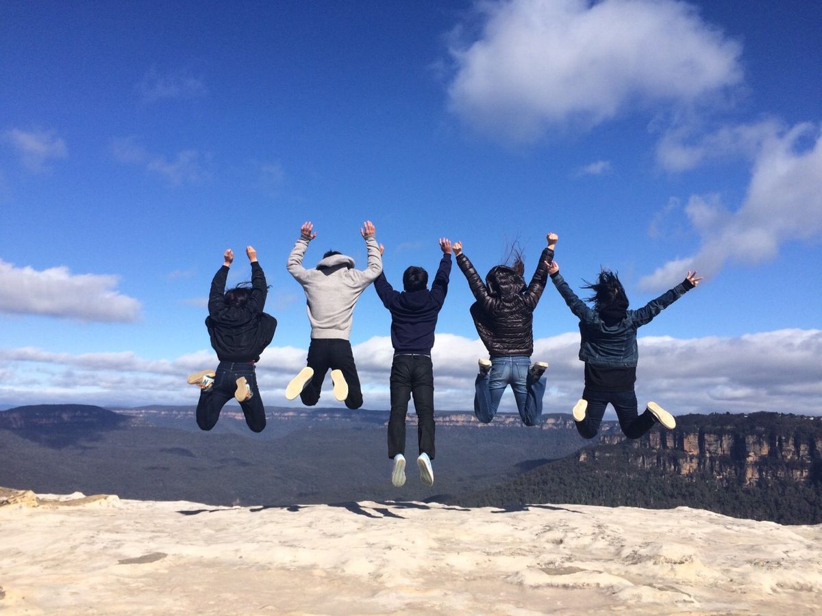 今回私たちは、大学のツアー中の1日フリータイムを利用してこのツアーに参加しました。この日の天気は最高でした!ブルーマウンテンは、2ヶ所連れていっていただき、スリル満点の写真です!撮鍾乳洞は、詳しい解説より納得しながら見れました。鍾乳洞は山の奥にあるので、なかなか私達の足では行く機会が無いので、一生ものの体験になったと思います。『大人の遠足』というだけあって、大人が多いですが、学生でもちゃんと楽しめます!ブルーマウンテンでは、ギャーギャー騒いで楽しい記憶、鍾乳洞では、歳を重ねるごとに、より大きな財産になることでしょう!