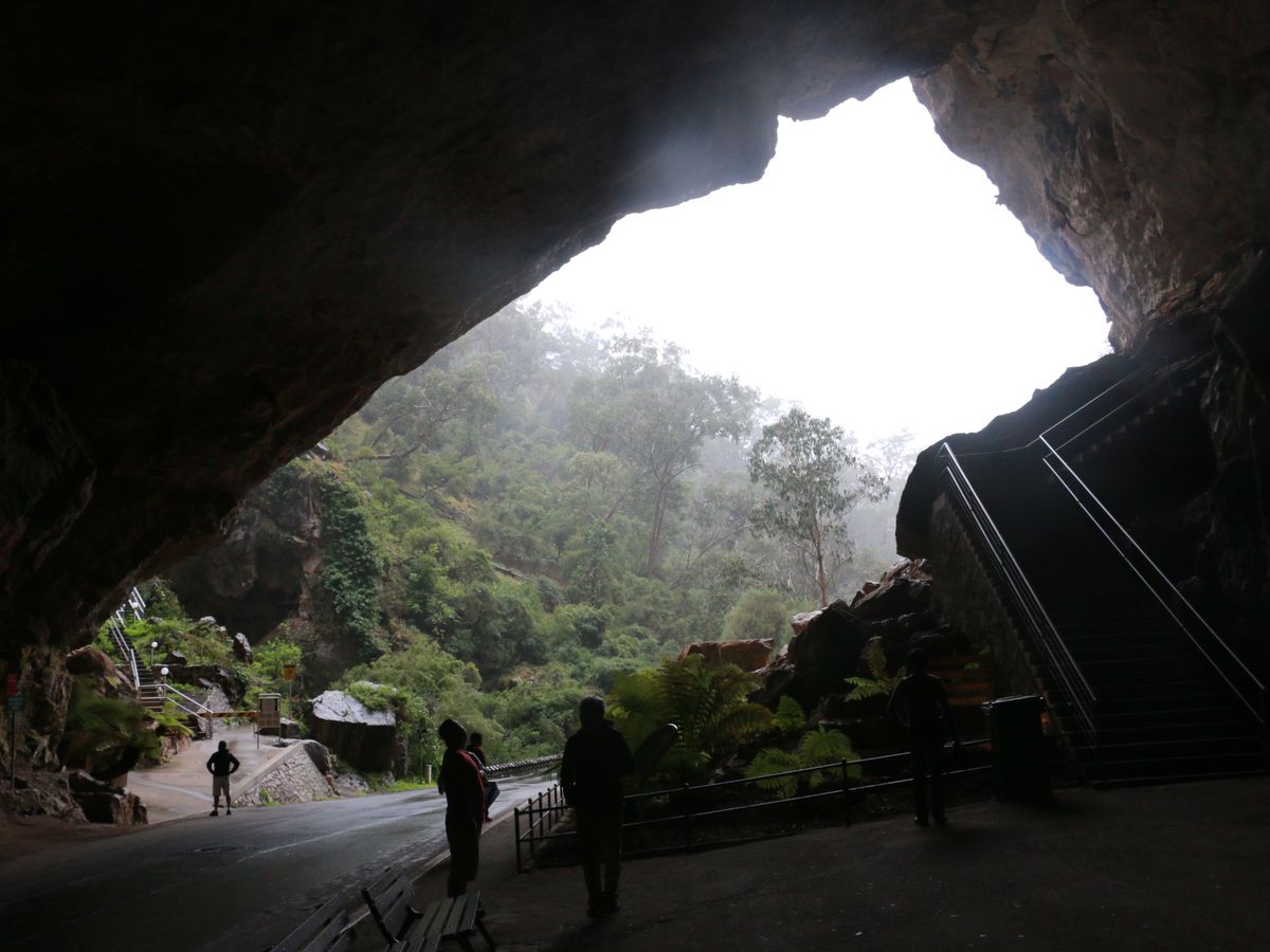 ガイドさんは、雨の日も楽しめると仰ってましたが、貴重な体験はできたものの、やはり雨は残念ですね。風があって、傘も役に立たず、ずぶ濡れに。スリーシスターズも霧の中。次回は、天気予報を参考にしてリベンジします。ジェノランケーブは、迫力満点。雨に関係なく、楽しめました。途中立ち寄った地獄のぞきのような場所、千葉の鋸山を思い出しました。霧で下が見えなくて、恐怖。雨でも、カンガルーには、沢山会えました。確かに、雨でもそれなりに楽しめたのかも。