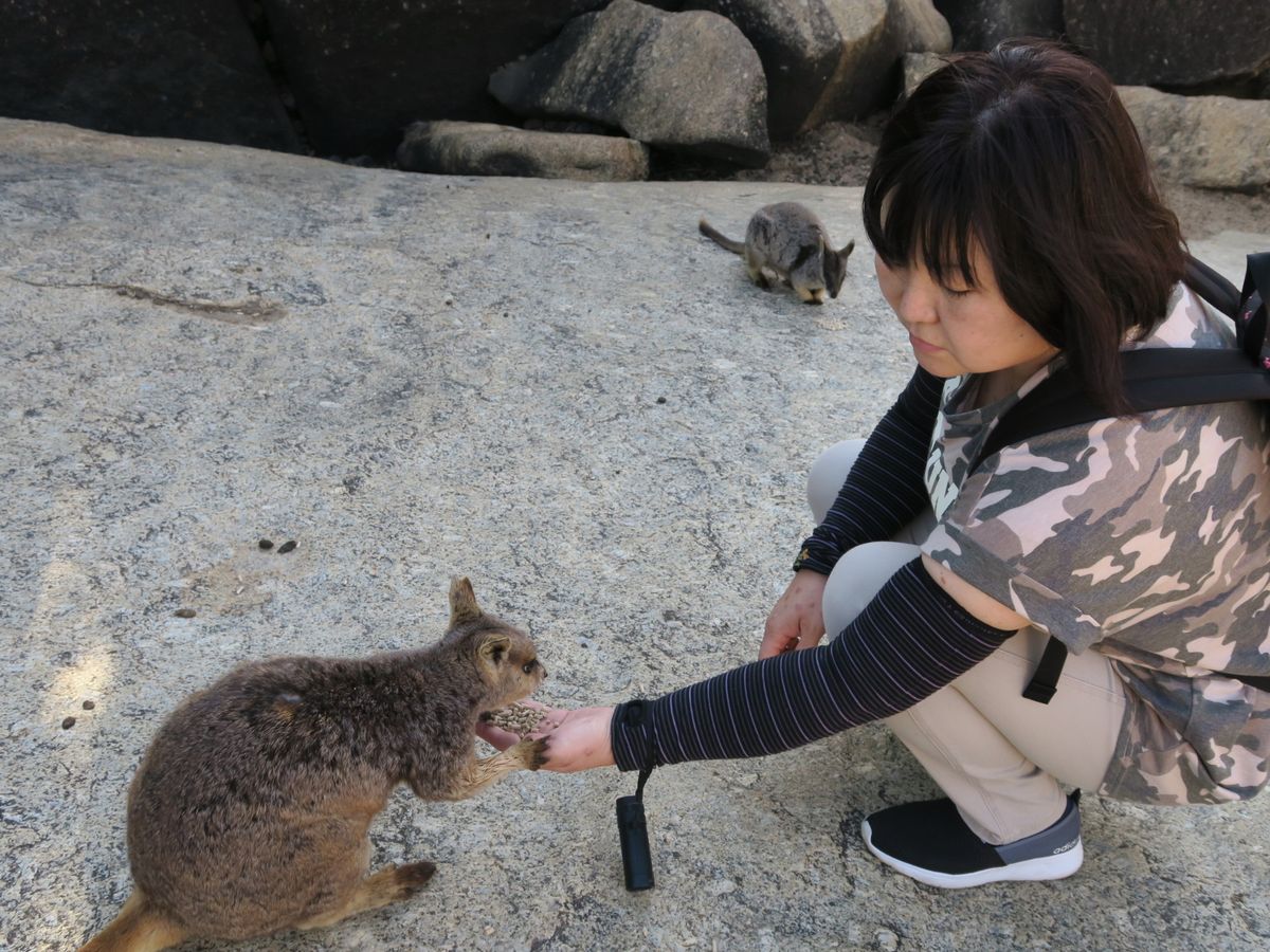 動物探検ツアーは、実はそこまで期待していなかったのですが、移動中の時間に、プランのスケジュールには載っていない、野生の貴重な動物や植物が車中からたくさん確認できるという、素晴らしい体験がありました。もちろん、プランに入っているロックワラビーの餌付けはものすごく可愛かったです。お腹の袋に赤ちゃんがいるロックワラビーを探すのも楽しみ方の一つです。