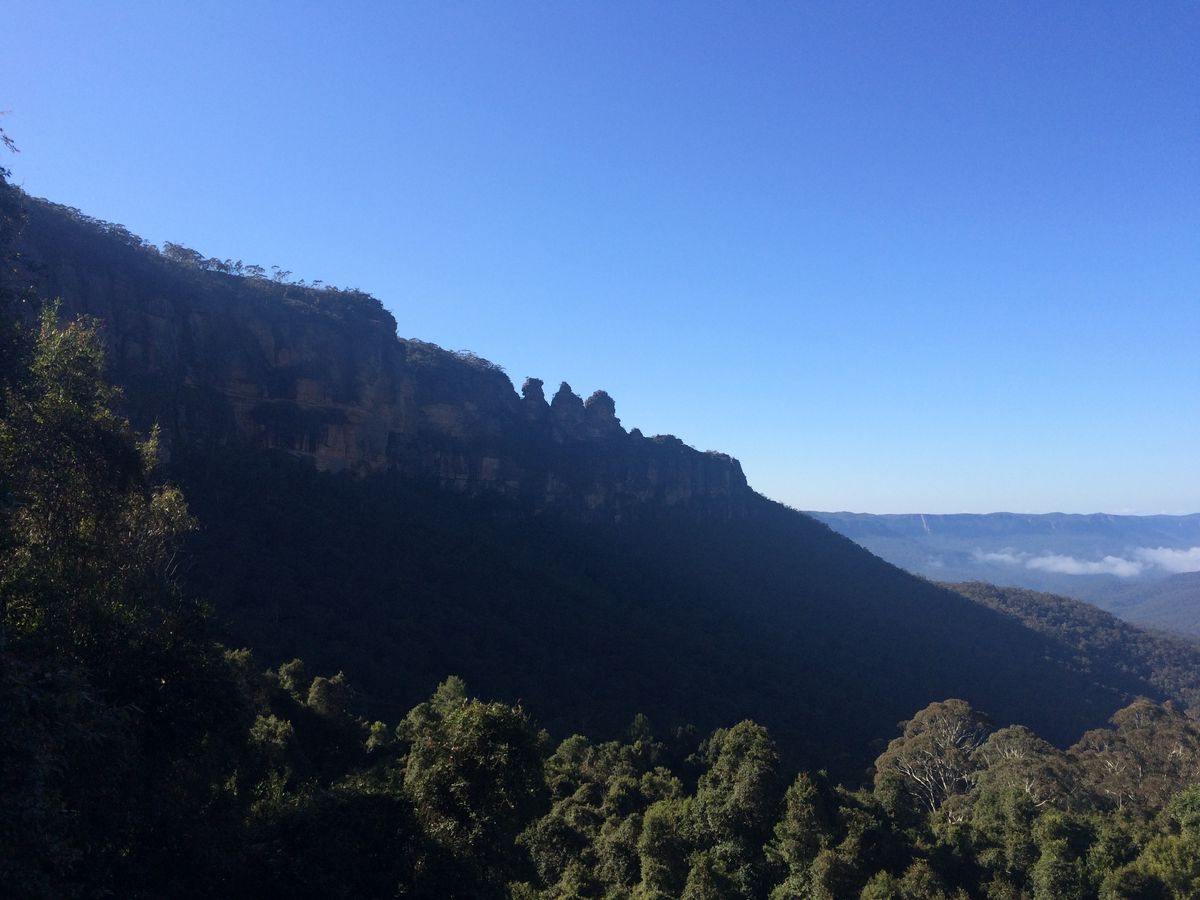 天気があまり良く無く当初はガスがかかって見えなかったのですが、次第に晴れ、全貌が見られました。素晴らしかった。この観光地は天候に左右され怖いですね。ガイドはジャックさんではなかったのですが、天気を心配して事前に訪れ計画を練ってくれていました。またシーニックウェイにも付き合ってくれていろいろ解説をしてくれました。ありがたかった。いいガイドでした。写真の後、見事に晴れました。写真は霧が晴れてきてスリーシスターズが見え始めた時の感動を表しています。