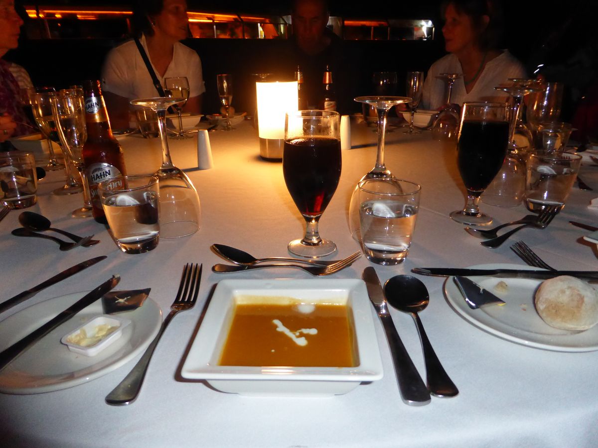 日本語スタートークはデザート後に参加の日本人だけ別の場所に呼ばれて(曇りで何も見えない夜空を見上げながら)サザンクロスの位置とかその後の英語でのスタートークの内容を前もって説明してもらうというものでした。