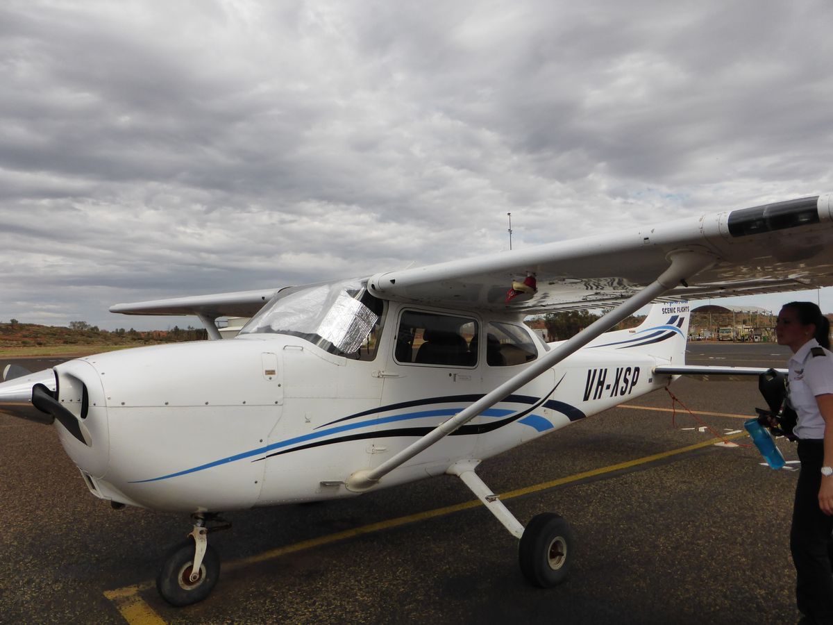 4人乗りの小型飛行機の後部座席に乗りました。