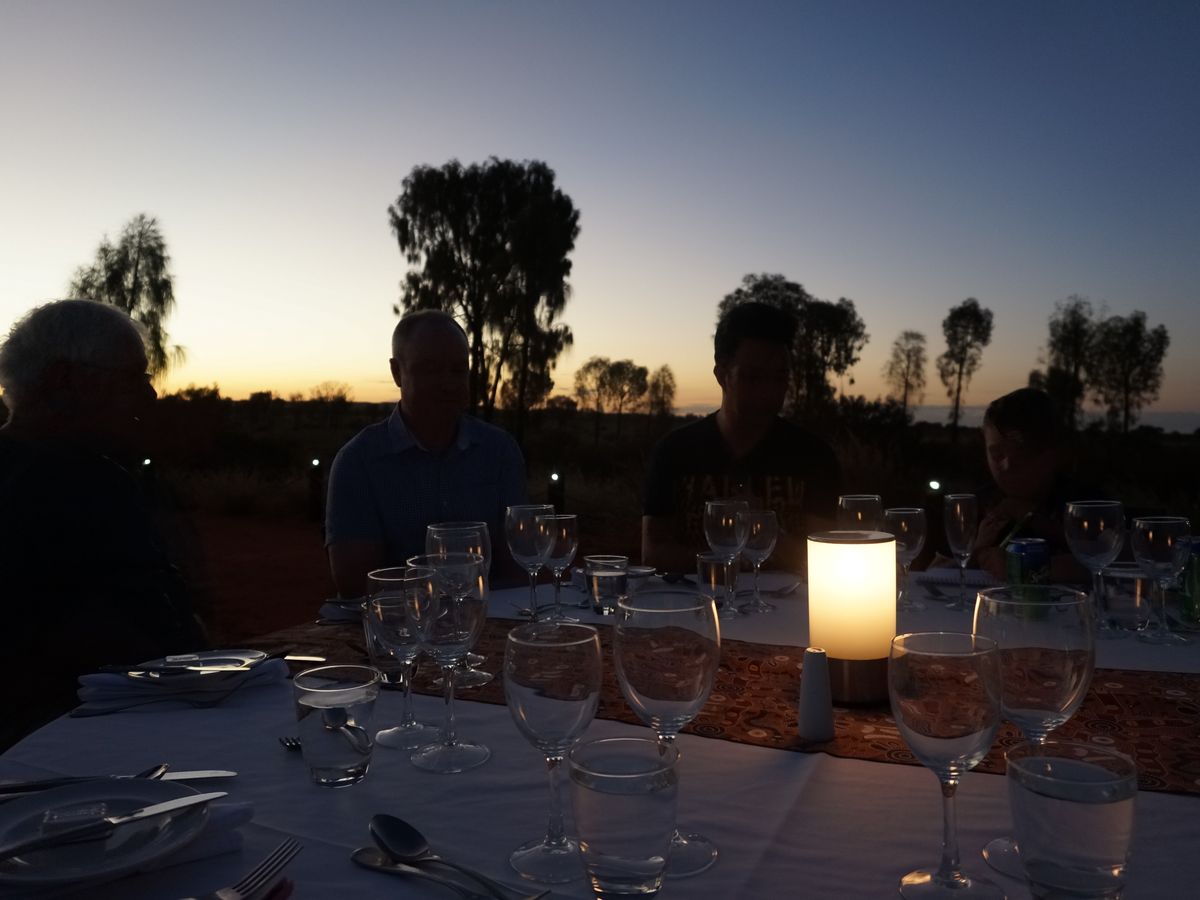 直前まで小雨が降っているくらいで、天気は悪かったです。しかし、曇り気味でもそれはそれで、サンセットは美しかったと思います。ちょっとウルルまでの距離が遠い会場だったかな…。ビュッフェはもう少し期待していました。でも星空トークが面白かったし、同行者も良かったといってくれました。同じテーブルだった中国の方達とも仲良くなれました。