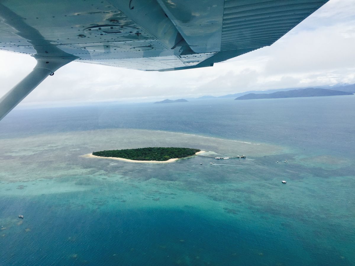 ケアンズ郊外のリゾートPalmCoveに滞在中に遊覧飛行を楽しみました。自分で運転してケアンズ空港のGAT(General Aviation Terminal)へ行きましたが、最近はGoogleMapが進化してカーナビにもなるため、リゾートからの運転もまったく迷わずに到着しました。GAT(待合室)では体重測定やルートの説明を受けた後に空港に入ってセスナに搭乗。10分でグリーン島上空に到達した後、雄大なサンゴ礁、ケイと呼ばれる砂地を見てからコアラリーフへ。パイロットのヒロさん(日本人)の案内でリーフを一周したのですべての席から十分にコアラの形を確認できました。魚が泳ぐところが見えるとのことでしたが、これは良くわかりませんでした。