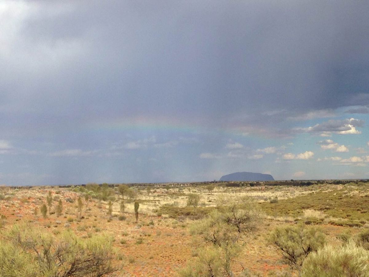ただ、雨のお陰でウルルの横に虹が見えました。