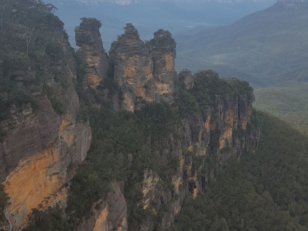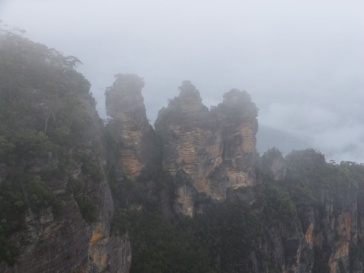 そのため、展望台などスリーシスターズ付近の景色はほぼ全滅でしたが、スリーシスターズだけは一瞬、ホント一瞬姿を現してくれました。