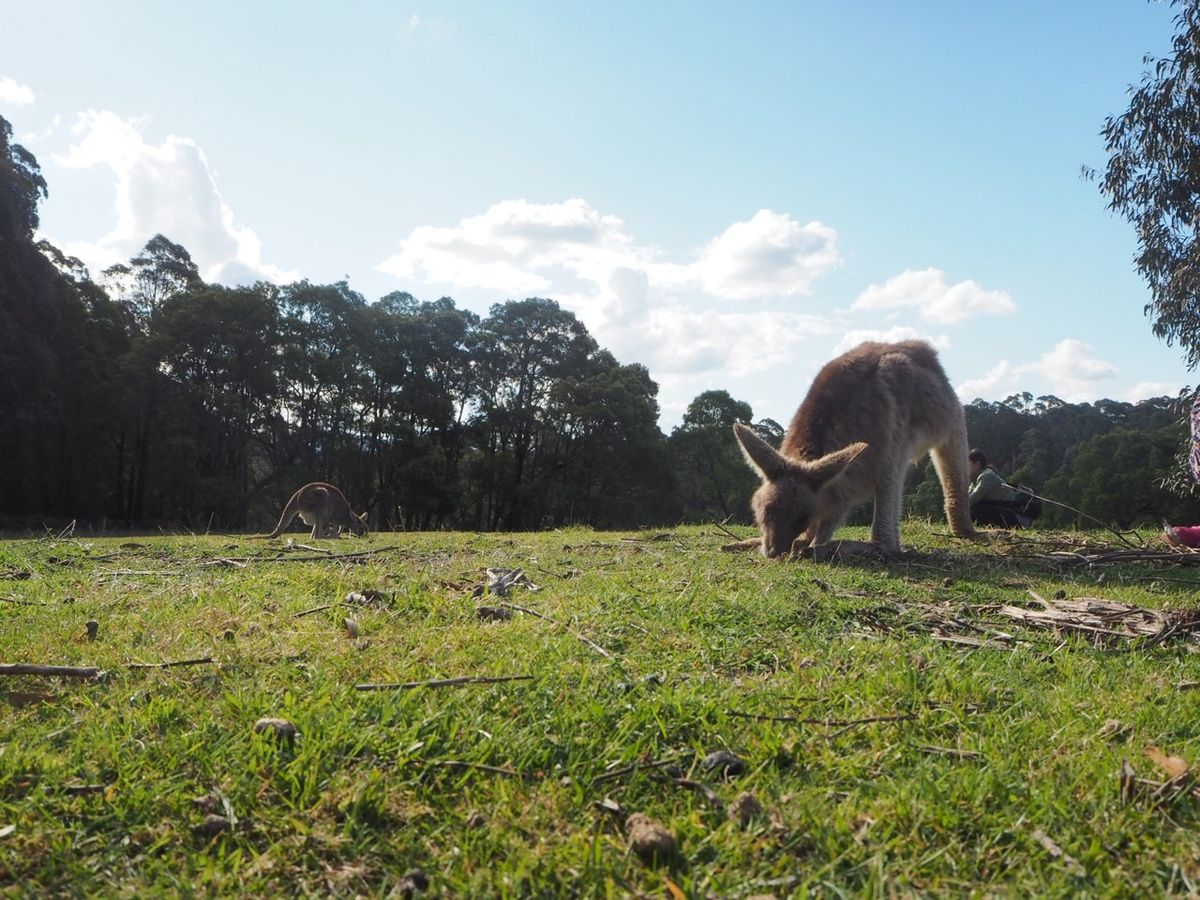 キュランダ鉄道に乗りガイドブックで見た風景を写真におさめ、カンガルーに触れ、