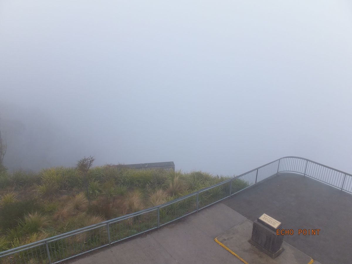 家内と娘(21歳)の3人で参加しました。朝からシドニー市内は厚い雲に覆われていて、ブルーマウンテンズの天気も危ぶまれましたが、ガイドさんの「シドニー市内とは天気が同じ訳ではありません。向こうは大丈夫かも」という言葉を信じて、バスに揺られました。しかし、天気は好転するどころか悪化。ついに雨も降りだしました。期待していたスリーシスターズは全く見えず。失望しました。