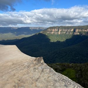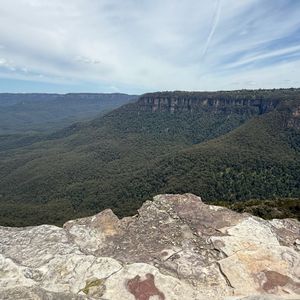 天候に恵まれ、ブルーマウンテンは綺麗に見れて、壮観。切り立ったがけ?下を見るとスリル満点、、端には怖くて立てず。。