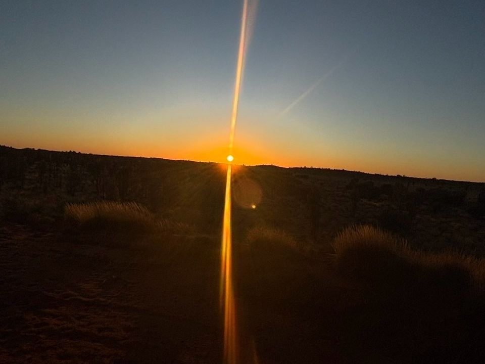 ラクダに乗って1時間半ほど、赤土の丘を登ってくる朝日と照らされるエアーズロックをラクダの上からゆっくりと鑑賞できます。ラクダは馬よりも大きく、歩くスピードがゆっくりで安定感ありました。専用のポシェットを貸してくれ、そこに携帯電話を入れて、ラクダの上から沢山写真を撮ることが出来ました(それ以外のリュックなどは案内所に置いて行くので、貴重品は持ってこない方が良いです)