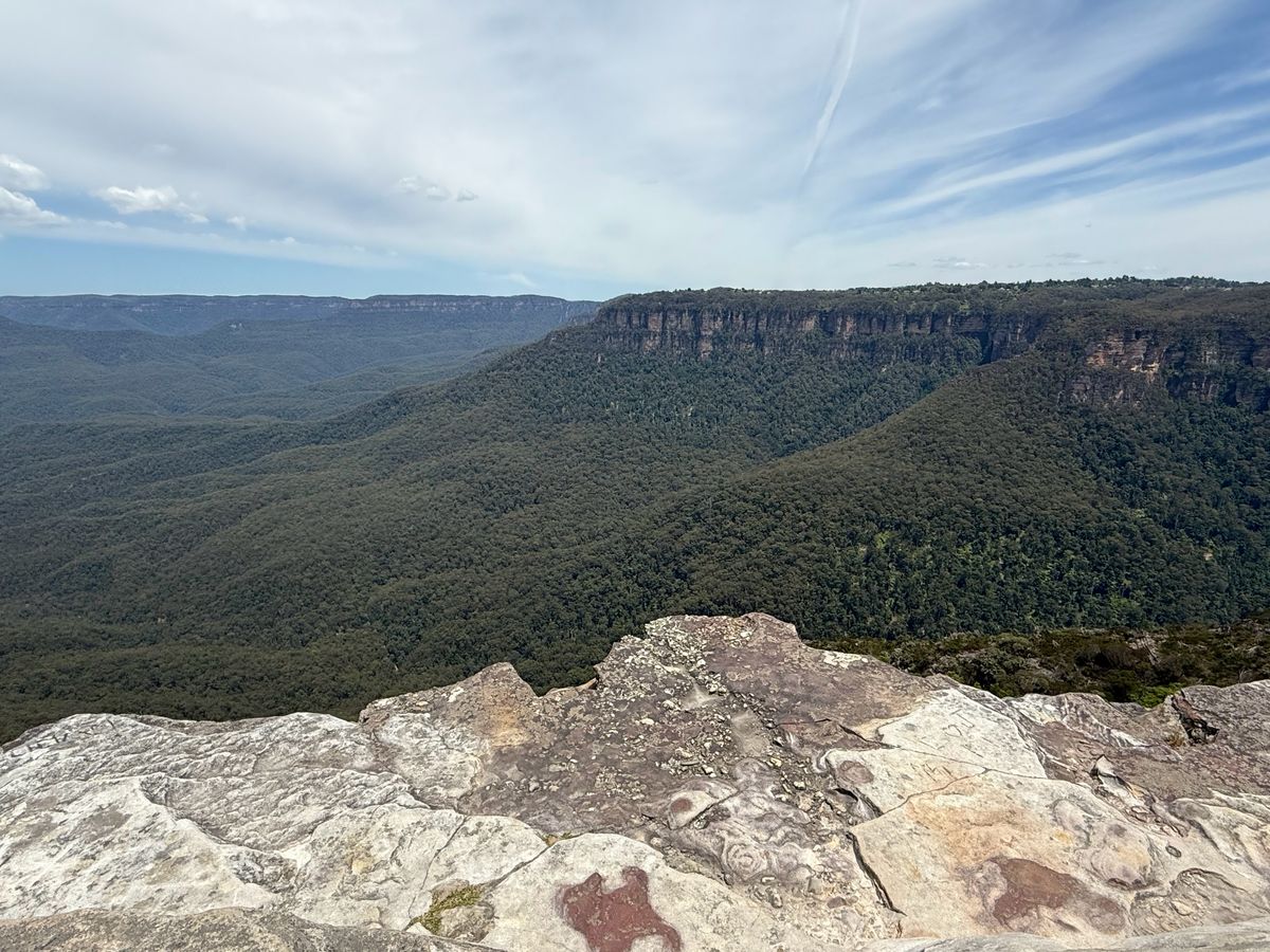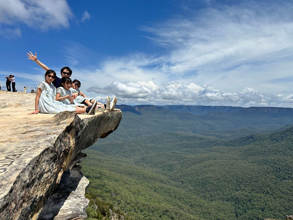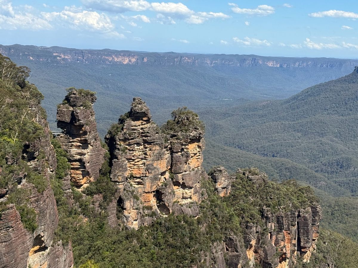 天候に恵まれ、ブルーマウンテンは綺麗に見れて、壮観。切り立ったがけ?下を見るとスリル満点、、端には怖くて立てず。。