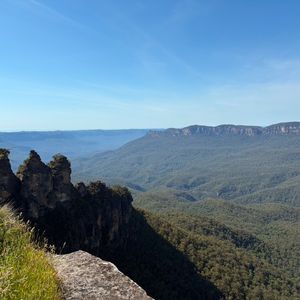 スリーシスターズは本当にわかりやすく三つの岩が連なっていました。ケーブルカーから見えましたが、エコーポイントから直視で見れました!エコーポイントには1954年にかつてのエリザベス女王が来た展望台があり、歴史を感じられて興味深かったです。