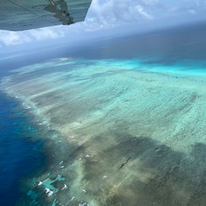 あいにくの曇りで心配でしたが空から見るグレートバリアリーフがとても綺麗でした!小型飛行機でも揺れも少なく楽しむことができました。日本語ガイドの方が送迎してくださるので安心でした。