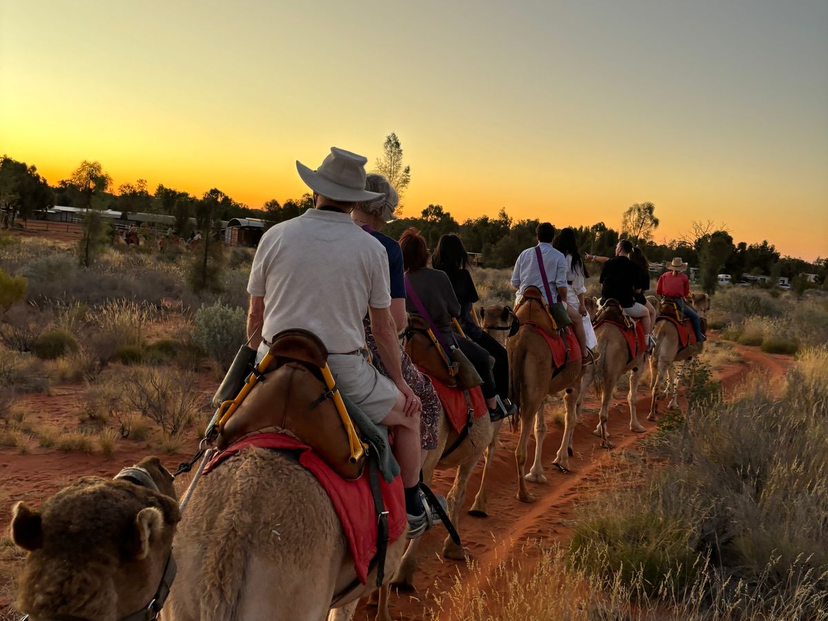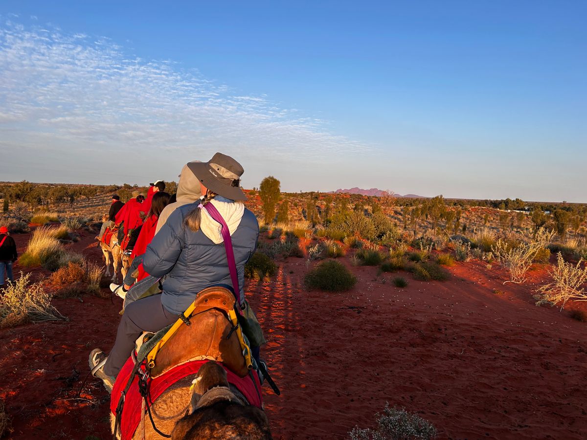 ラクダに乗りながら、ウルル&カタジュタ、サンセットが見えとても綺麗で貴重な経験でした。