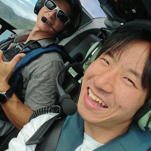 安定した飛行でどこまでも続く水平線と珊瑚礁の絶景を見られるよう、ヘリを怖くない程度に傾けて飛ばしてくれたり、写真ポイントを飛行中に教えてくれたり、あと、私と珊瑚礁を背景に一緒に写真も撮ってくれました!笑笑