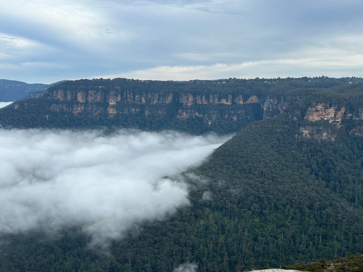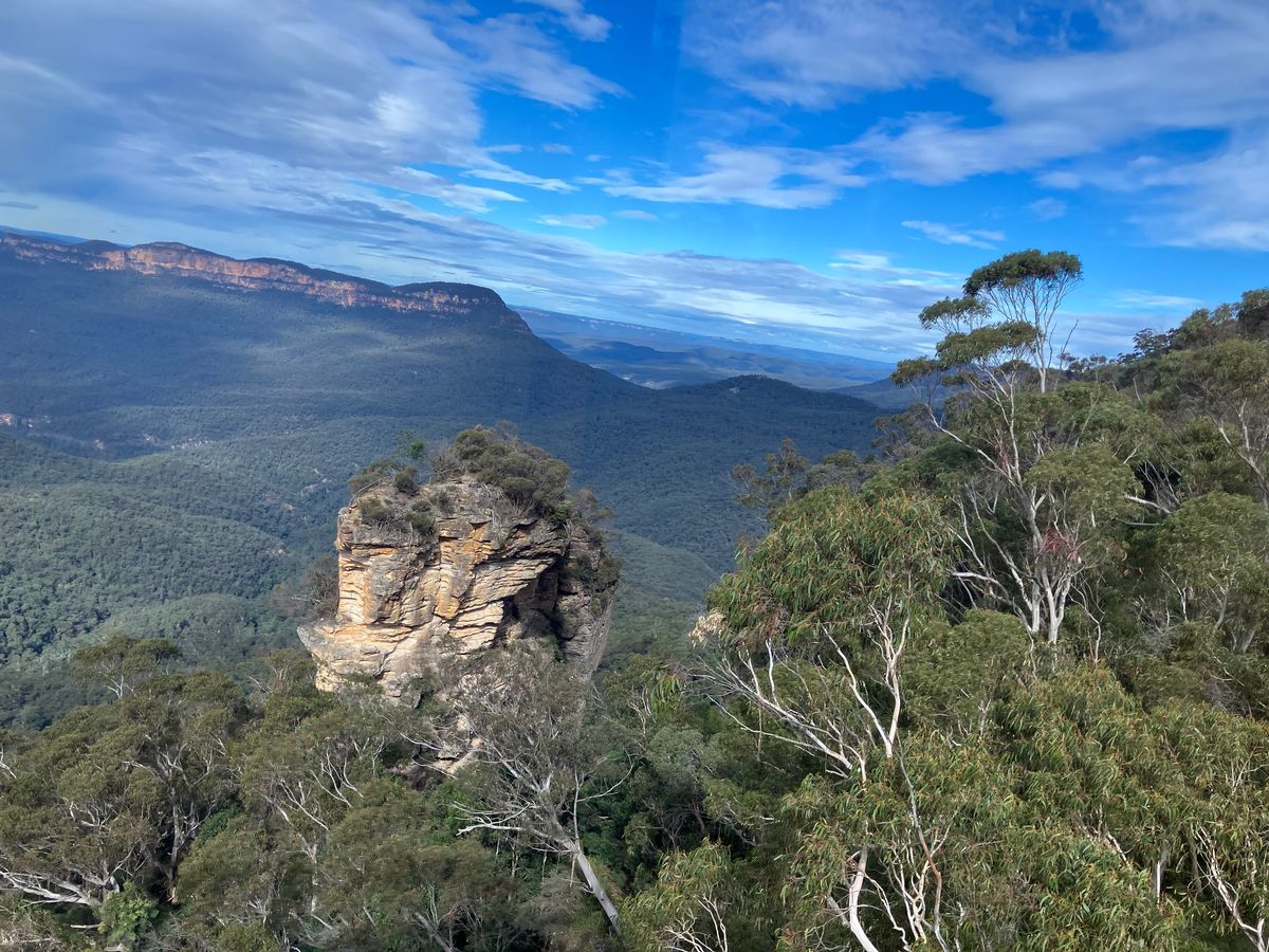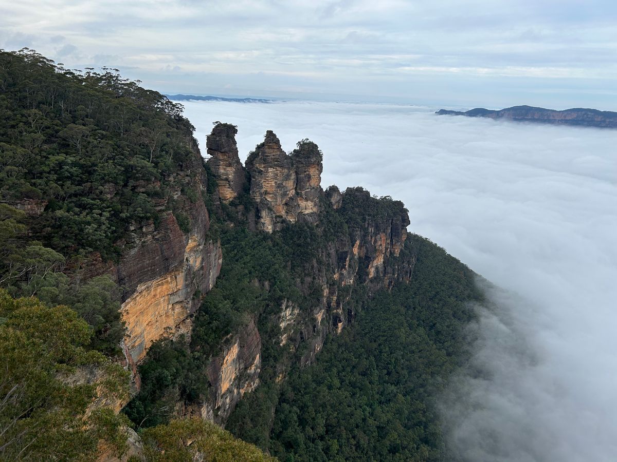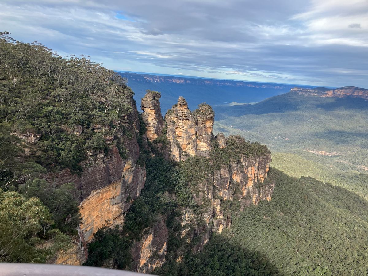 当日は曇りだった為、綺麗に山並みが見れるか心配だったのですが、雲海がかかった神秘的なブルーマウンテンの山並みや名所のスリーシスターズが見え、まさに絶景でした。