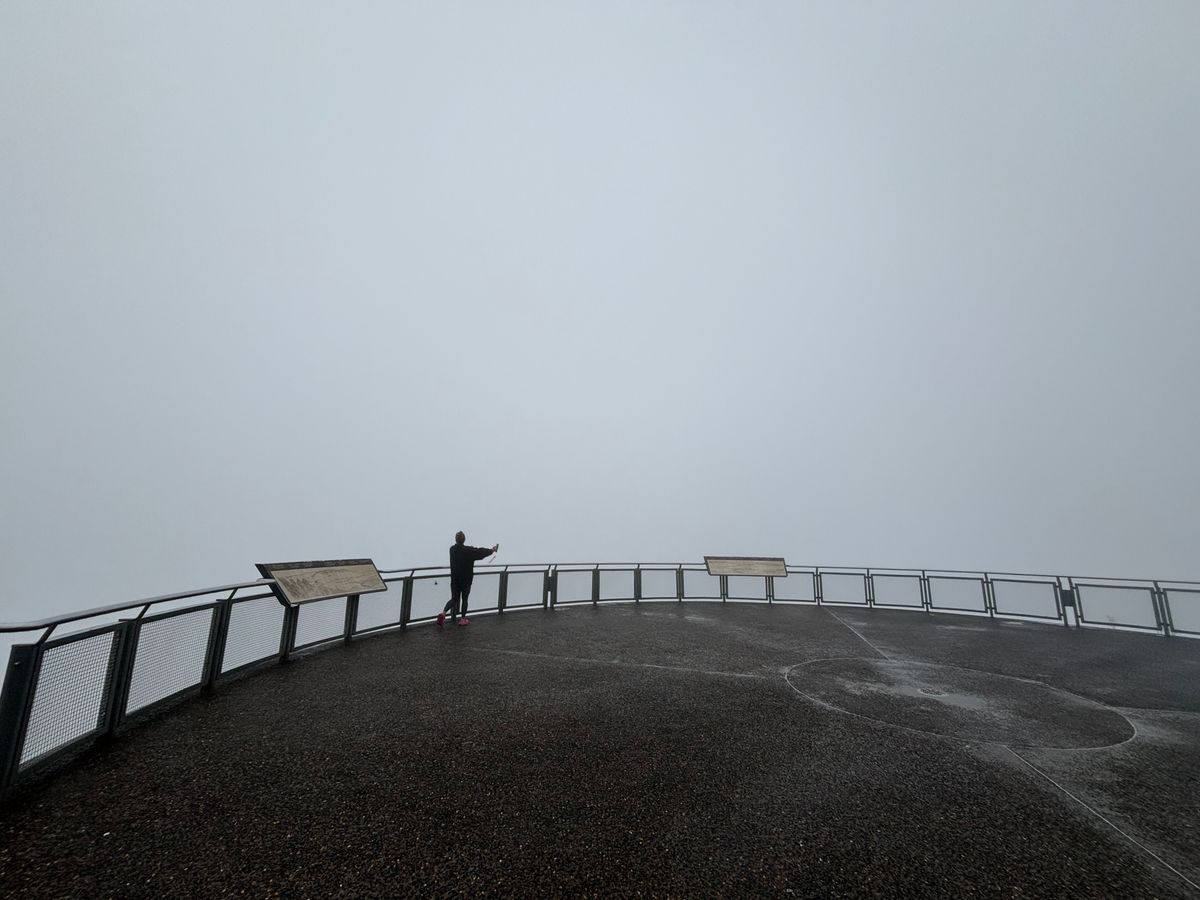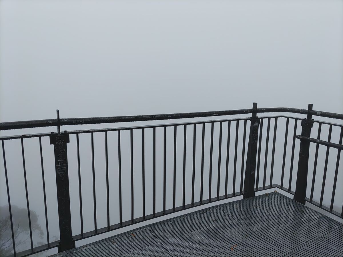 その後はブルーマウンデンズに向かいましたが、曇天で景色はすべて見えませんでした。リンカーンズロックのみ、ある程度眼下は見えていたので、高所にいる感はなんとなく分かりました。