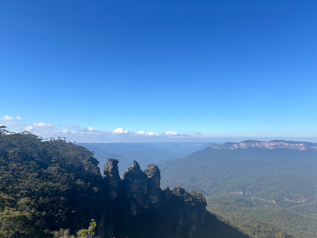 ときどき雨が降る天気で、スリーシスターズが全く見えませんでした。断崖絶壁での記念写真はスリル満点でした。ガイドさんは、いろいろお得情報含めて非常に良かったです。