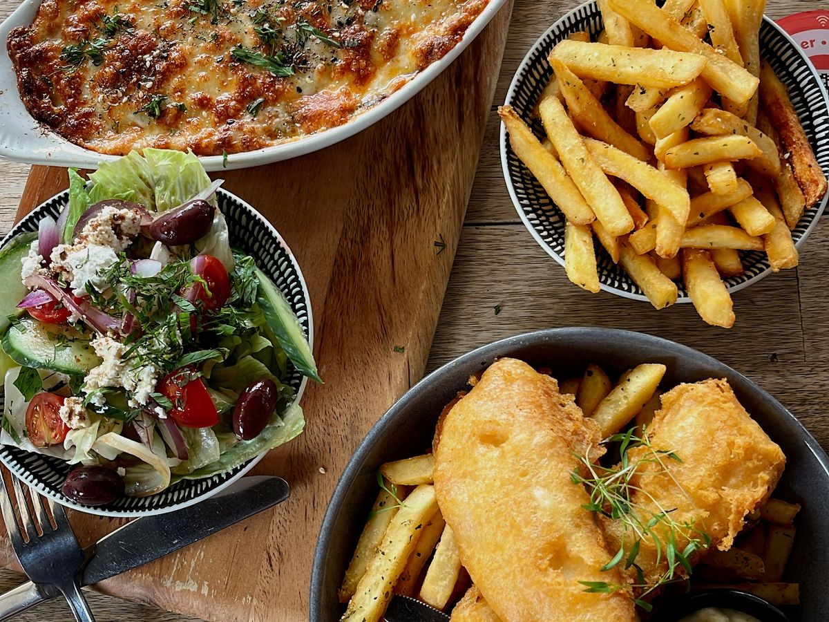 お昼はレストランで、チキンのかつ(みたいなの)とフィッシュ&チップスを大変美味しくいただきました。