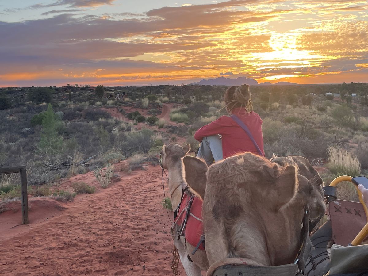 ゆっくりゆっくり進んでいくラクダさんに揺られ♡美しいウルルのサンセットを楽しみました(約1時間)