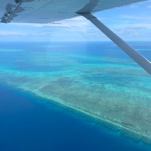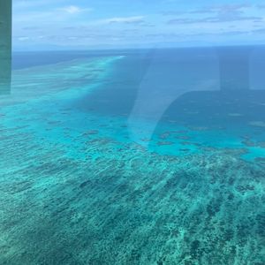 ケアンズ旅行のハイライトに空の散歩を。グリーン島とその近辺の美しい海を機長さんの説明を聞きながら堪能できました。船からでは見ることができない大パノラマは飛行機ならではだと思います。お天気が良かったこともあり、たいへんスムーズなフライトで快適でした。フライトも40分と程よい時間で、たいへん満足です。ラッキーなことに、私たちのフライトは4人乗りのセスナ172で、パイロット2名と私達2名で貸し切り感があり良かったです。他の方たちは混載で少し大型の機材でのフライトでした。(コースが違うのかもしれません)窓は綺麗で撮影に問題なし。左右旋回するので同乗者皆が同じ景色を楽しめます。たいへんお勧めのツアーです。天候に左右されるアクティビティなので旅程の前半に予約し、悪天候時の順延に対応できるように計画しておくこと良いかと思います。