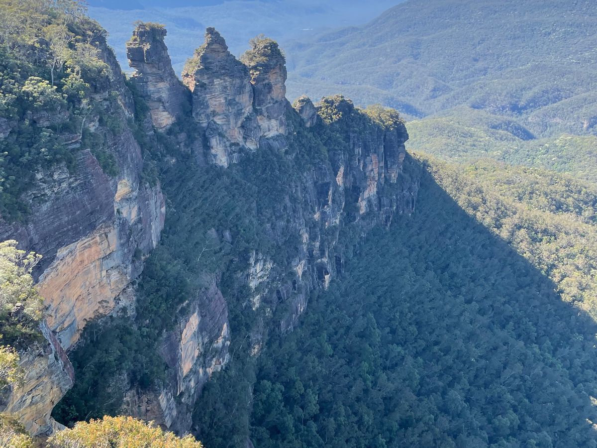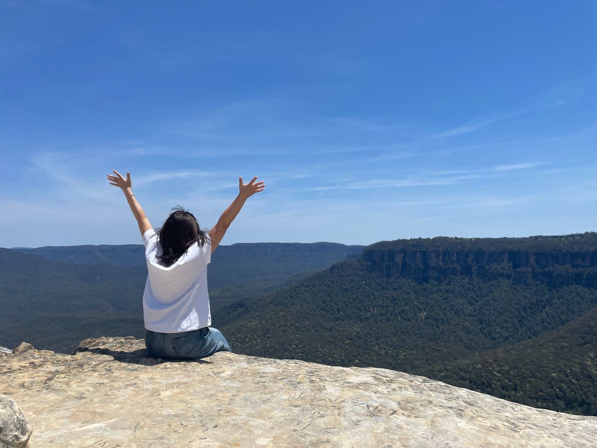 朝急いでホテルの朝食を食べて、ピックアップ場所へ。大きな車に乗って、約2時間、キングステーブルに到着しました。足を一歩踏み外したら、、、。の場所ですが、青空に緑の木々、茶色の岩壁を前にして、とてもとても感動しました!ツアーガイドさんが写真もたくさん撮ってくださり、ジャンプしている写真なんかも撮ってくださいました。その後はスリーシスターズに向かいます。バスに乗っている最中にブルーマウンテンズやスリーシスターズのお話を楽しくしていただいたので、実際に見た時には、「あ!あれがスリーシスターズか!」と嬉しくなりました。その次はアクティビティをして、ルーラの街で昼食を食べました。ミートパイのお店はやはり人気で激混みだったので、私はピザ屋に行きました。ピザもとても美味しかったです。その後はショッピングをして革の鞄を購入しました!