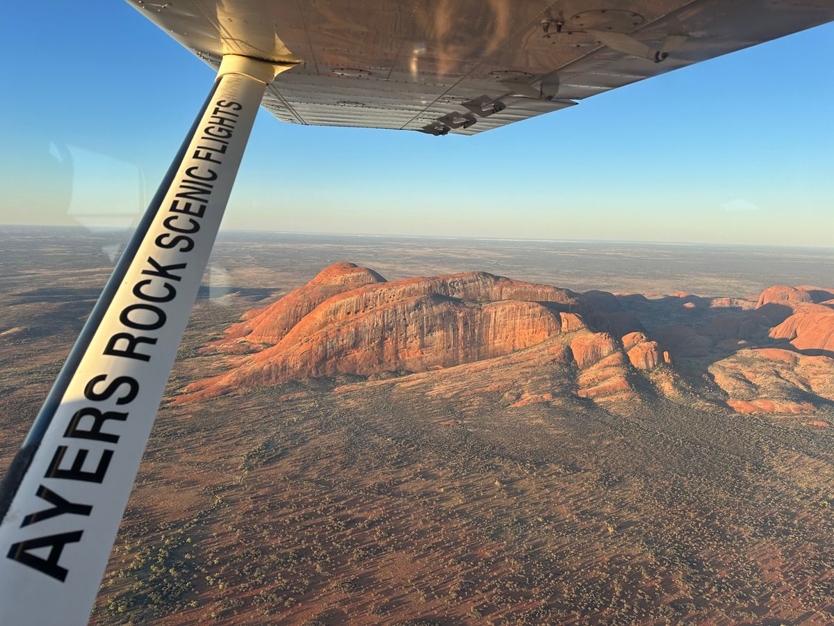 40分のフライトに高いお値段…と悩みに悩みましたが、乗ってみて本当に良かったです。時間帯を、いつにするか悩みましたが、サンセットがみれるかもしれないも1番最後の時間帯にしました。結果、最高の景色を見る事ができました。下から見るエアーズロックやマウントオルガも良かったのですが、上から見る姿は、大地の偉大さを感じる事ができて本当に素晴らしかったです。マウントオルガは見学でも一部しか見れない事が多い中、全体像を掴む事ができます。パイロットの方は安全を1番に、楽しめるように飛んでくれました。小型飛行機の小回りの良さも感じられて、面白かったです。もし、もう一度エアーズロックに行く機会があれば、ぜひまた乗ってみたいと思います。