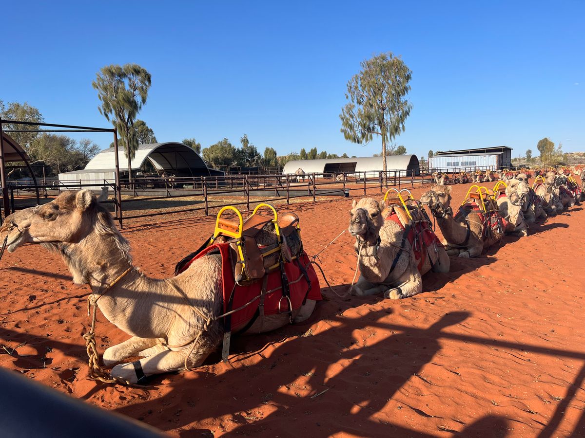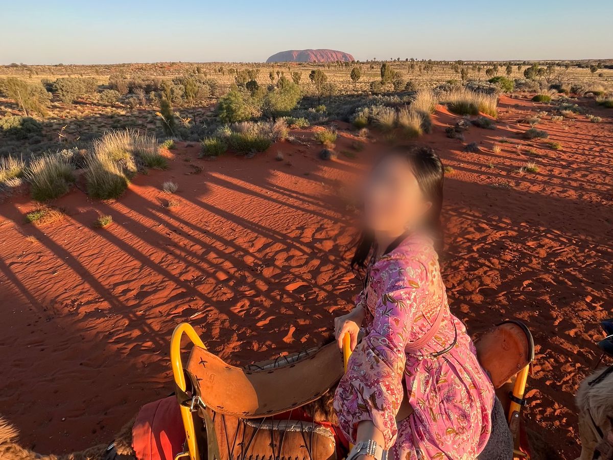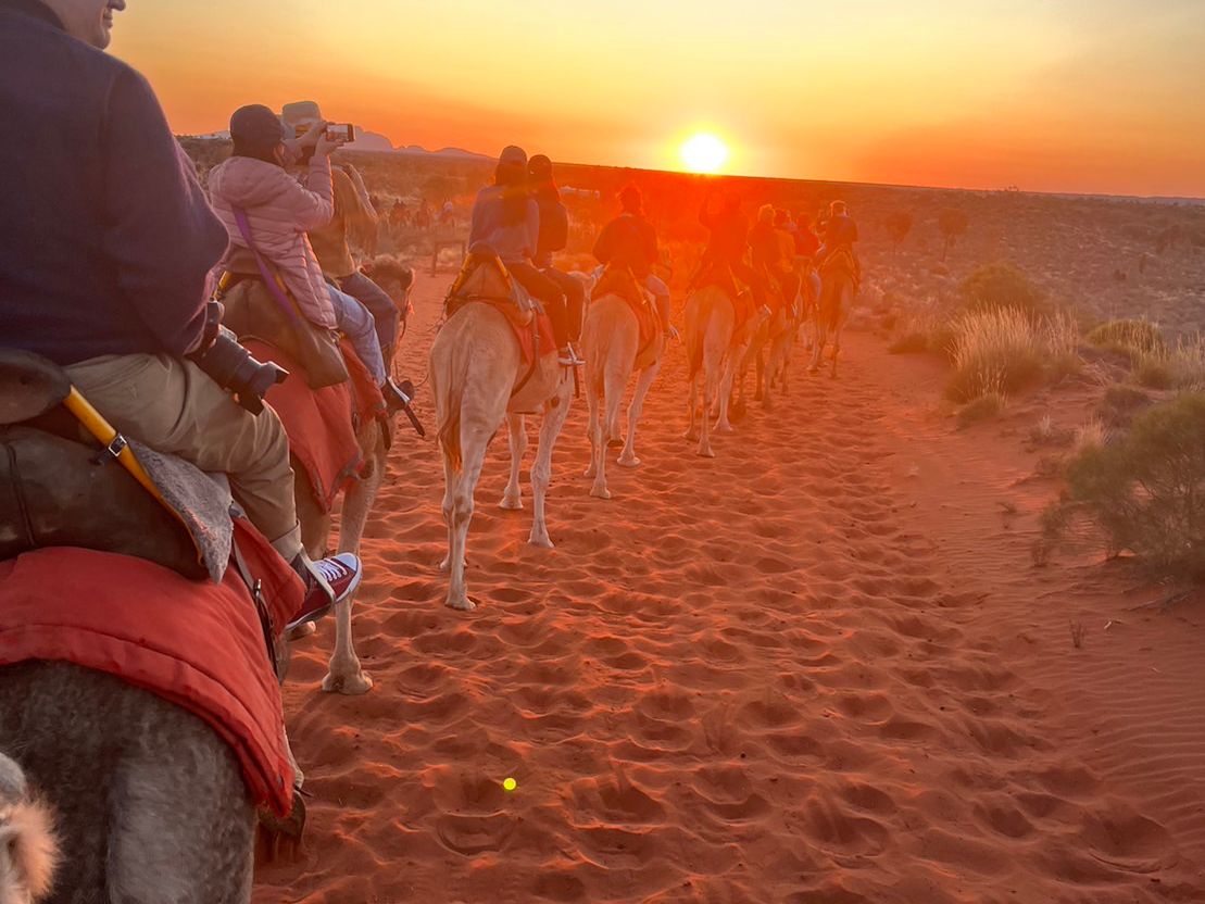 初めてのオーストラリア、初めてのエアーズロックで、初めてラクダに乗りました。1人乗りだと、追加料金がかかるとのことでしたが、私たちは娘と2人乗りで、とても楽しかったです。隊列を組んでゆっくりゆっくり進んで行くので、揺れても、すぐ後ろのラクダの顔が、近くにきても、怖い(笑)と、キャーキャー言いながらも、楽しいひとときでした。
