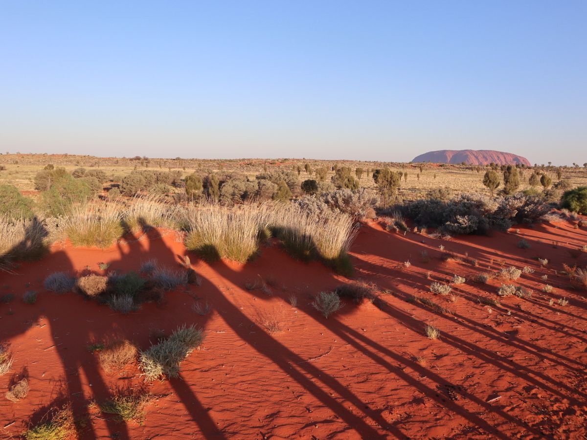 太陽はウルルの後ろに昇るのではなく、反対側に展望台があり、太陽に照らされていくウルルを見ます。