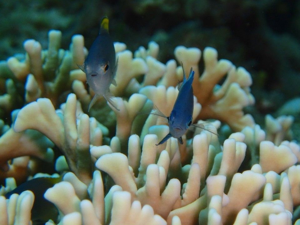 9月末時点で水温24℃ほど、透明度は15-20mです。その日最適なダイビングスポット3箇所それぞれ45分前後かけて廻りました。最大深度はそれぞれ18-20,16,14mほどでした。カメやナポレオンフィッシュは残念ながら見れませんでしたが、サメには会えました。