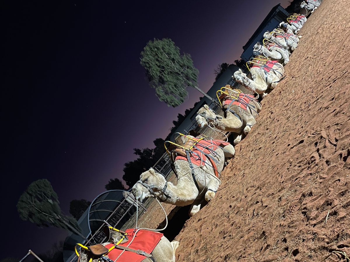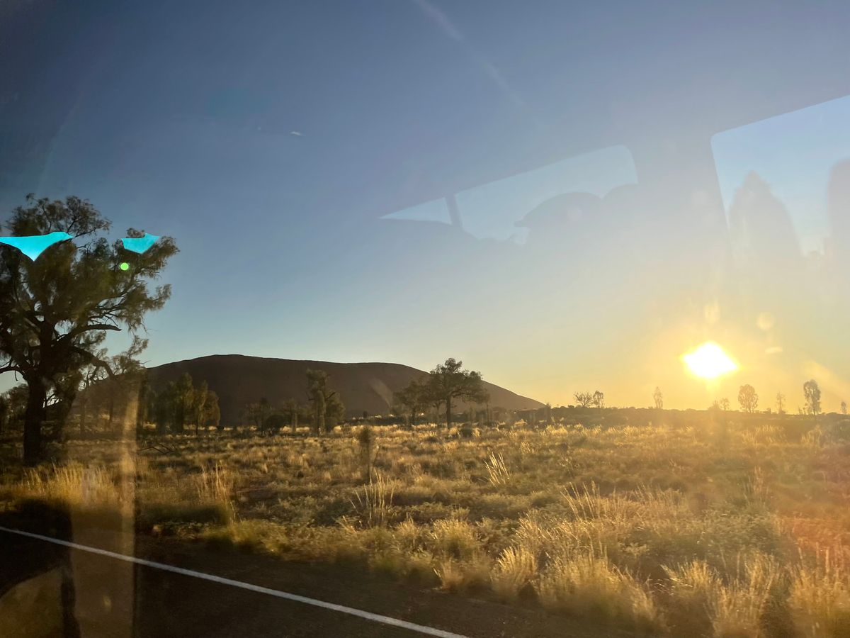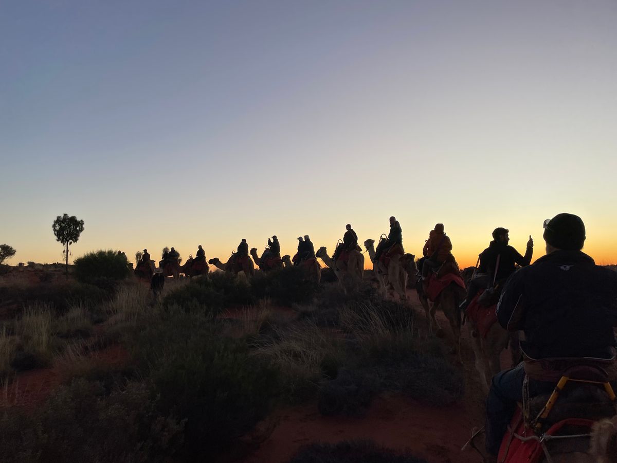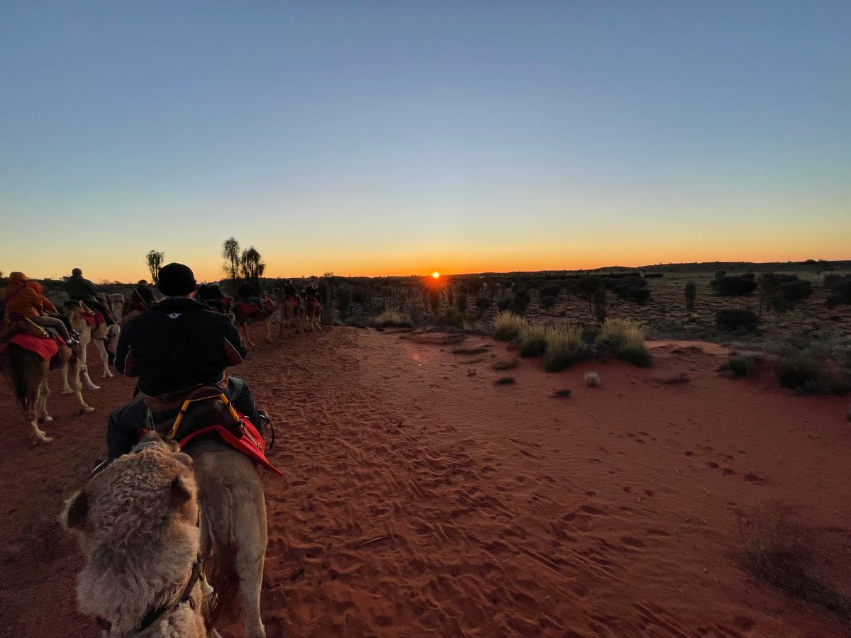のんびりと揺られながら最高のロケーションまで連れて行ってくれました!エアーズロックとサンライズが地平線上に並ぶ景色は最高でした