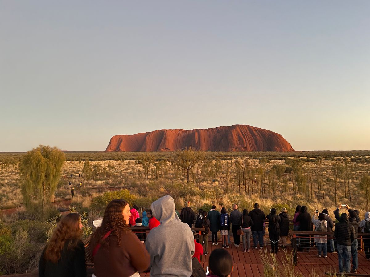 朝日と共にエアーズロックを鑑賞。日本では味わうことのない広大な地平線の中に聳え立つエアーズロックが少しずつ日に照らされるのを見て、本当に感動しました。