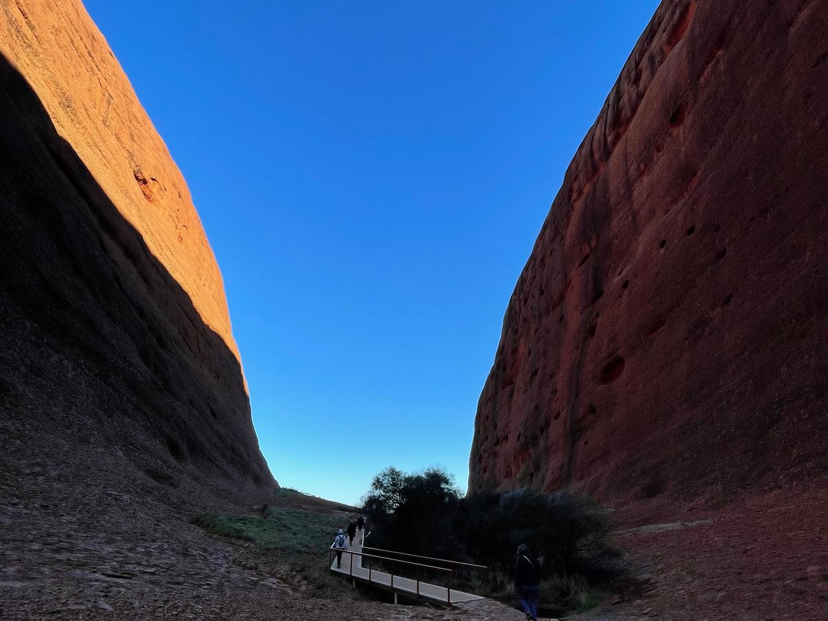 その後、カタジュタへ。渓谷を40-50分歩き、間近にカタジュタを感じることができました。巨大な岩の間を歩いていく圧倒的な感覚は、写真では到底伝えられない貴重な体験でした。
