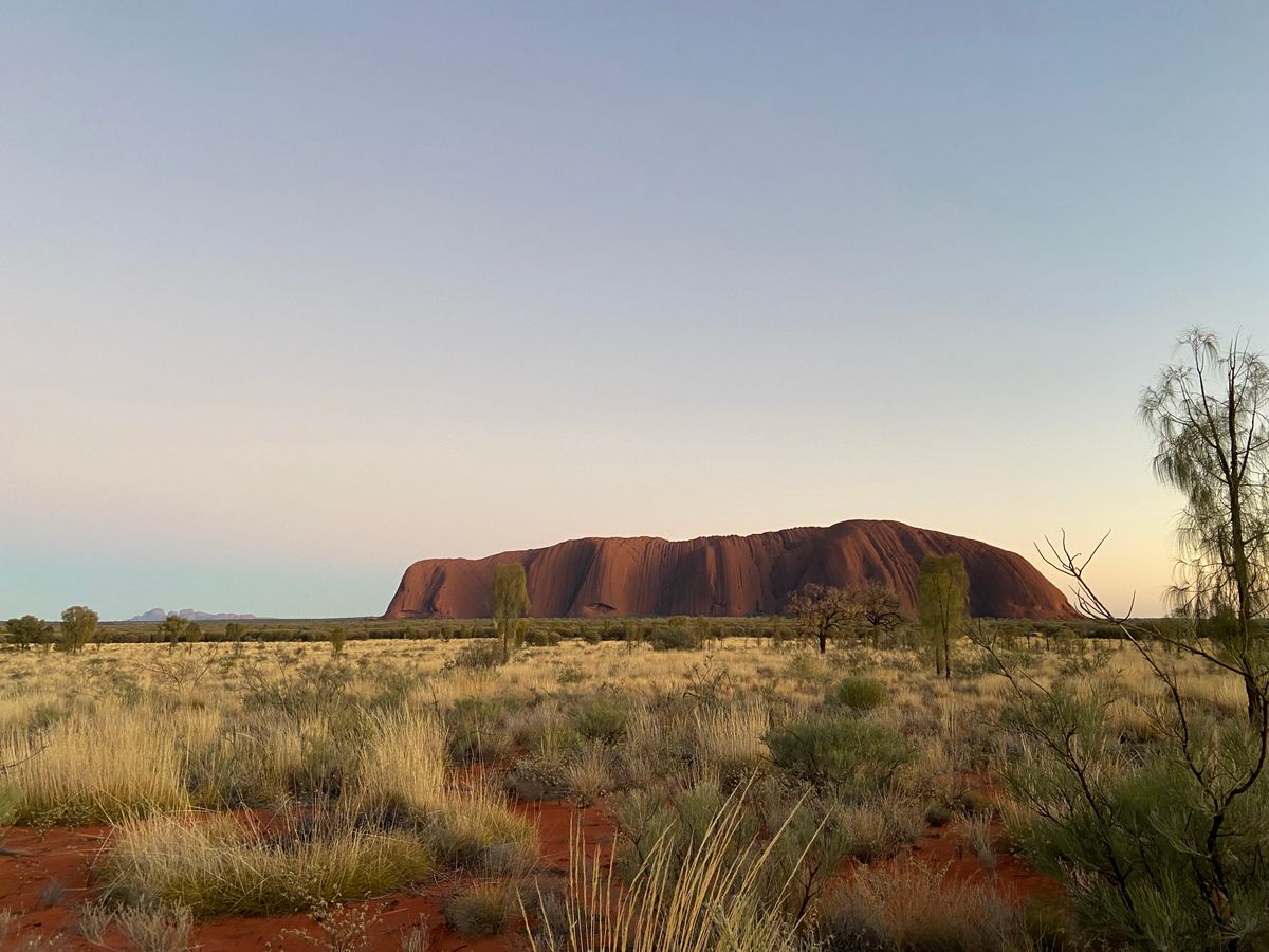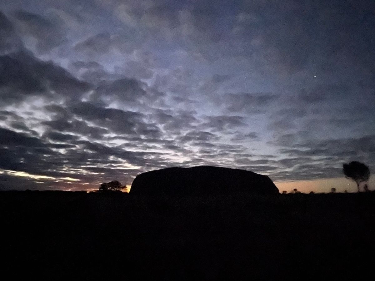朝6時に日本人ガイドさんがホテルにお迎えに来て下さり、私達含めて8人でツアーが始まりました。サンライズ場所に行く前に別のポイントでウルル越しに空が明るくなる瞬間を見させてもらえました。