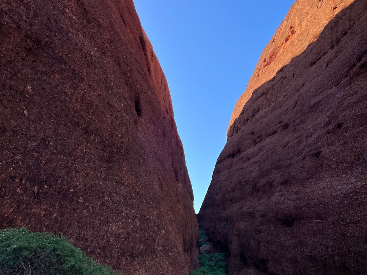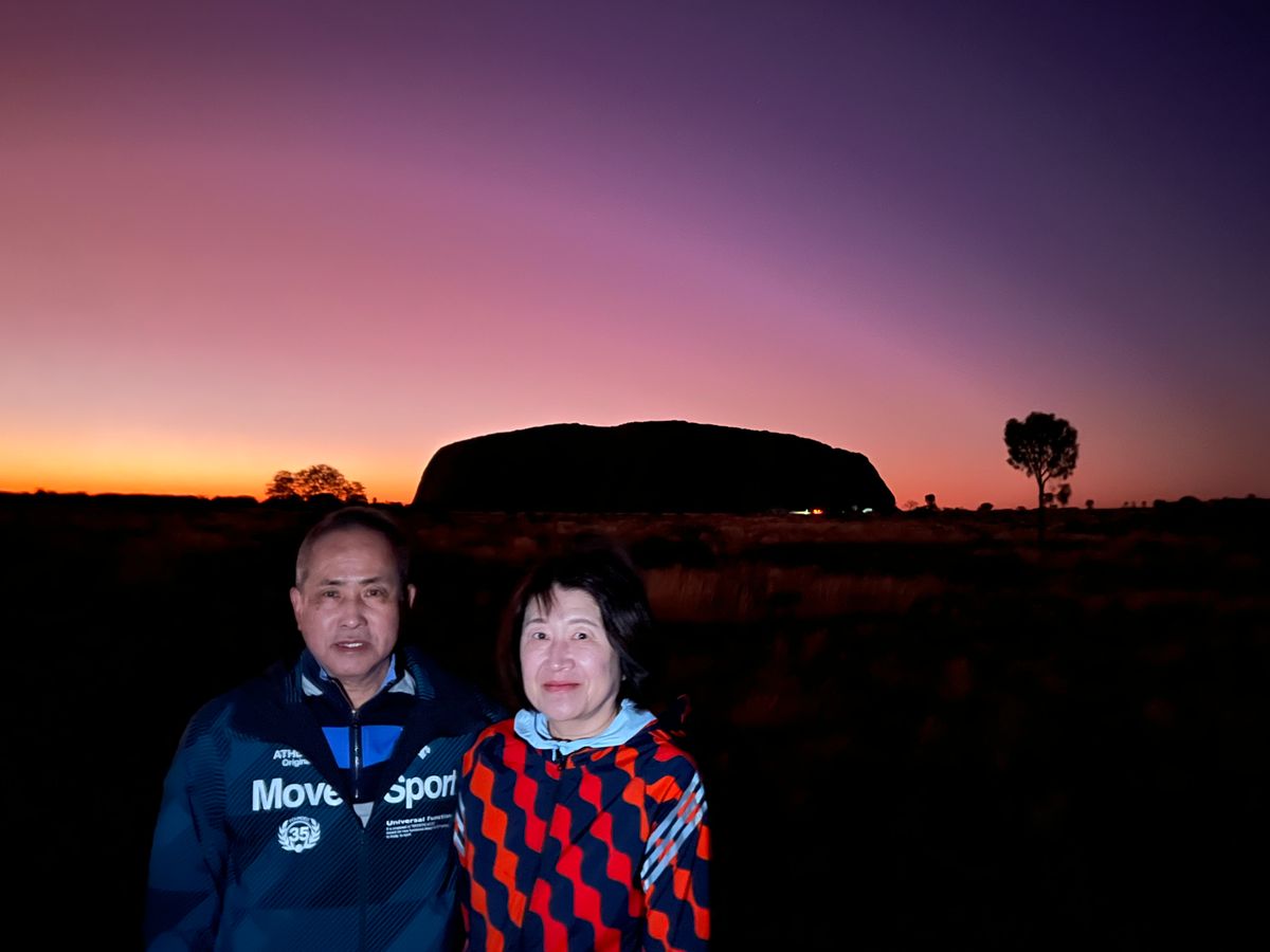 ウルルって漠然と巨岩と言う事しか思い浮かばなかったのですが、昼過ぎに空港に着く為その日はショッピングセンター?に行き買い物、此方ではアルコールの販売はしておらず、店頭でしか飲めません。後で分かったのですが、一ヶ所だけホテルで販売しているそうです。翌日、暗い中ピックアップしてもらい、日の出のスポットへ、その後、サンライズ展望台でウルルの色の変化を見届けて、カタジュタに行き奇岩の中を散策しました。日本語ガイドの方は運転しながら次から次へと説明、又、絶景ポイントではシャッターを押してくれ綺麗な写真も取れました。