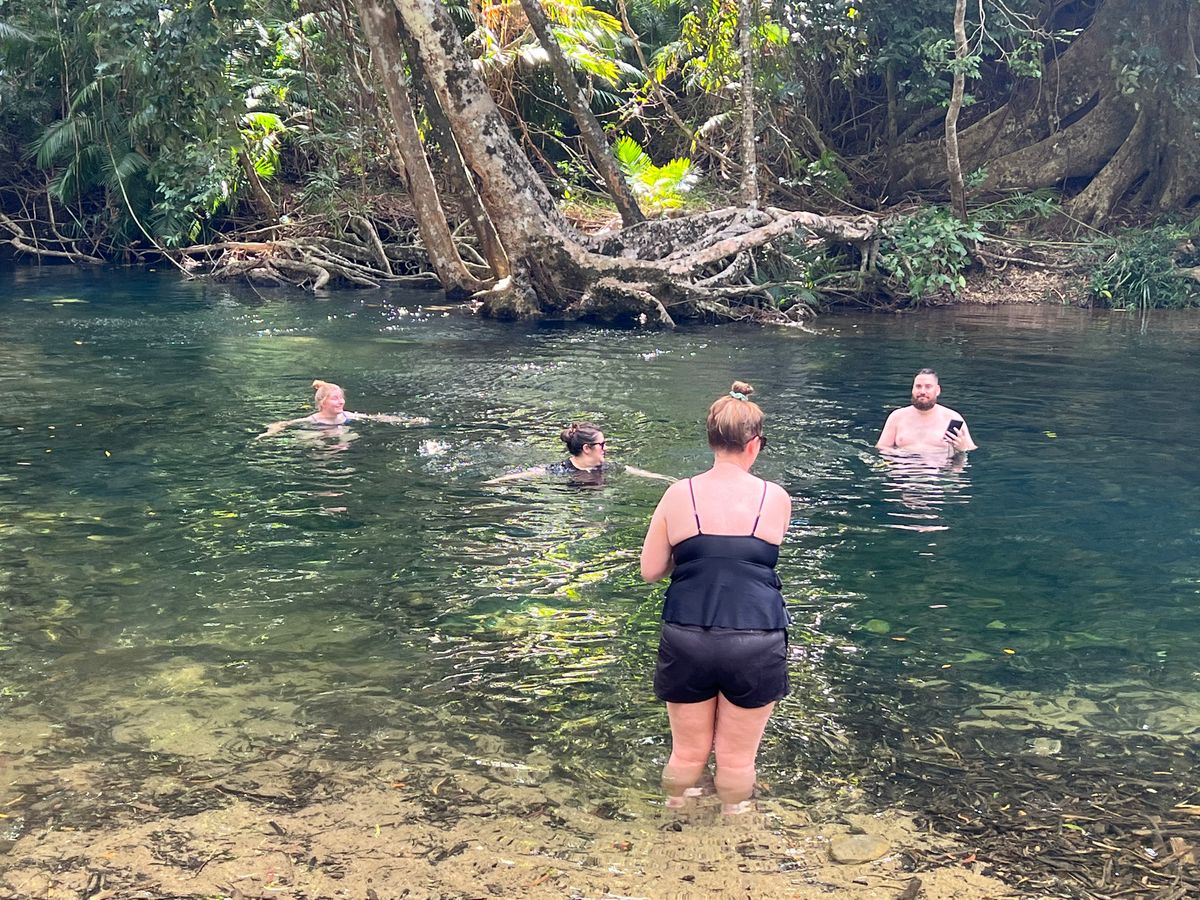 偶々行った時にキュランダ鉄道が点検の為、行けなかったので、此方の英語ガイドになってしまいました。ガイドさんの癖のある早口英語は、理解難しかったですが、沢山の自然の中、クルーズでは、クロコダイルに遭遇!綺麗な川では水着になり、泳ぐ時間も有りました。