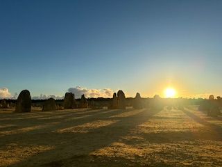 夕陽に照らされたピナクルズの奇景は一見の価値ありです。その後インド洋に沈む夕陽を堪能できました。